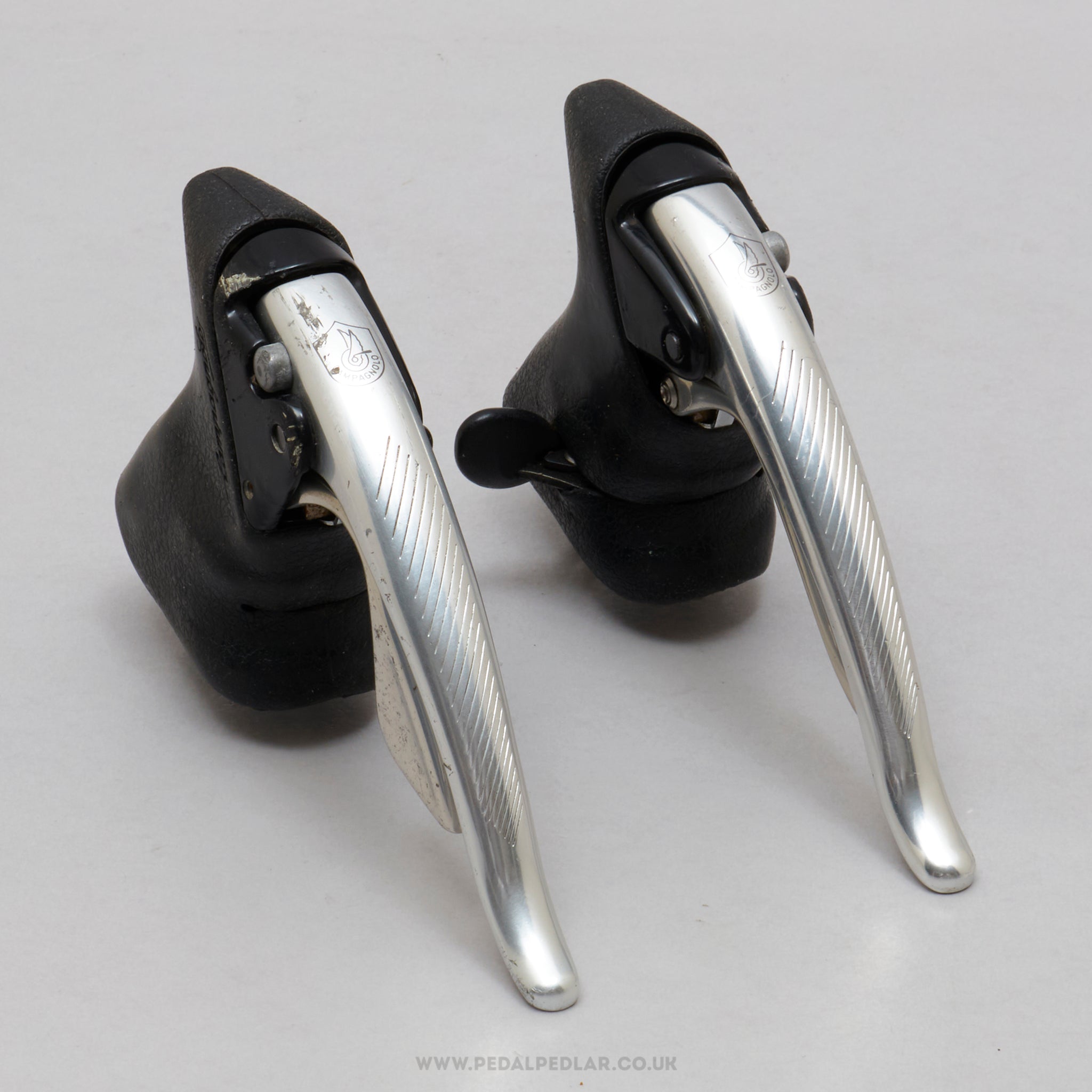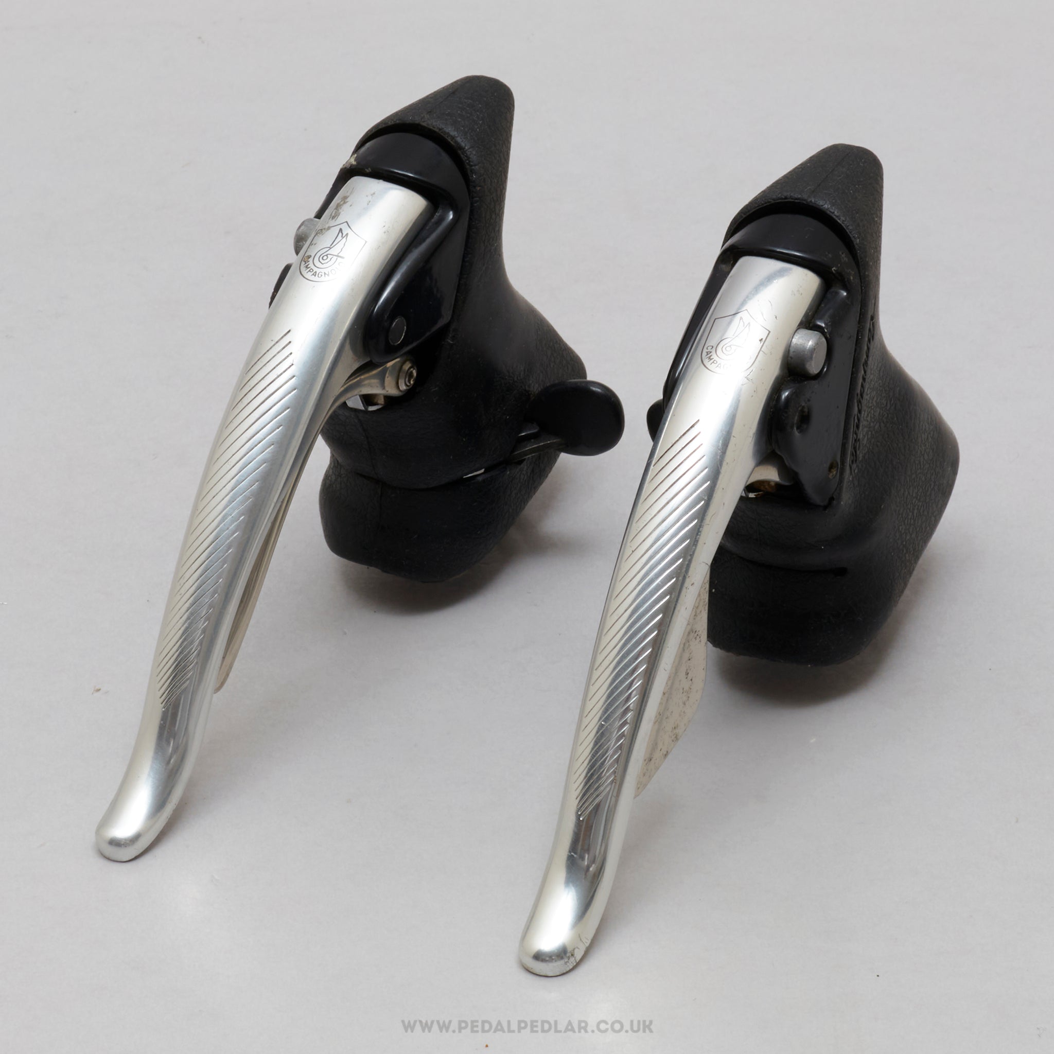 Campagnolo C-Record shift/brake levers, hailing from Italy and in production during the 1990s. Made from aluminium/rubber and weighing in at 521 grams. A fine choice for keeping your classic bike authentic, but also great for any other compatible bike.