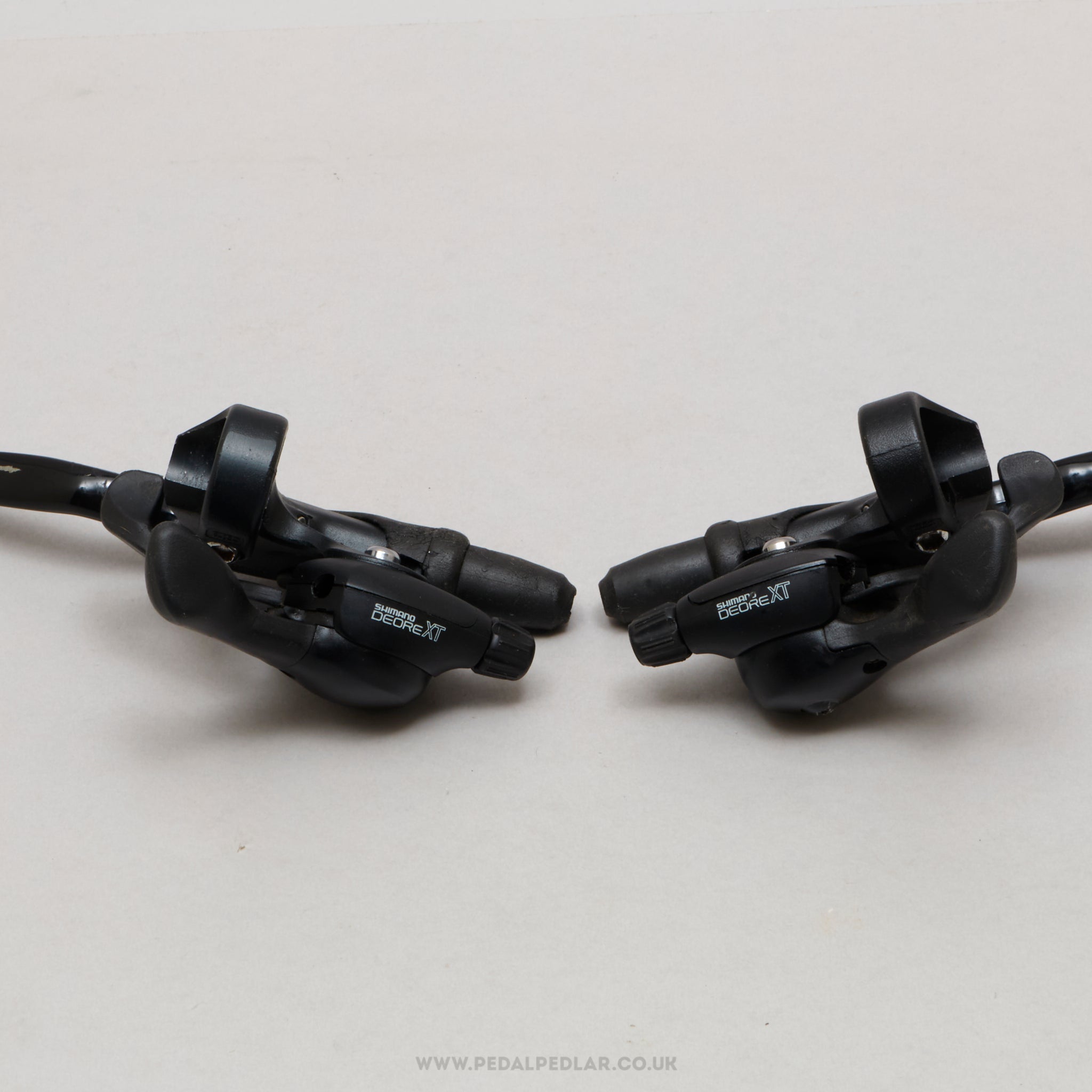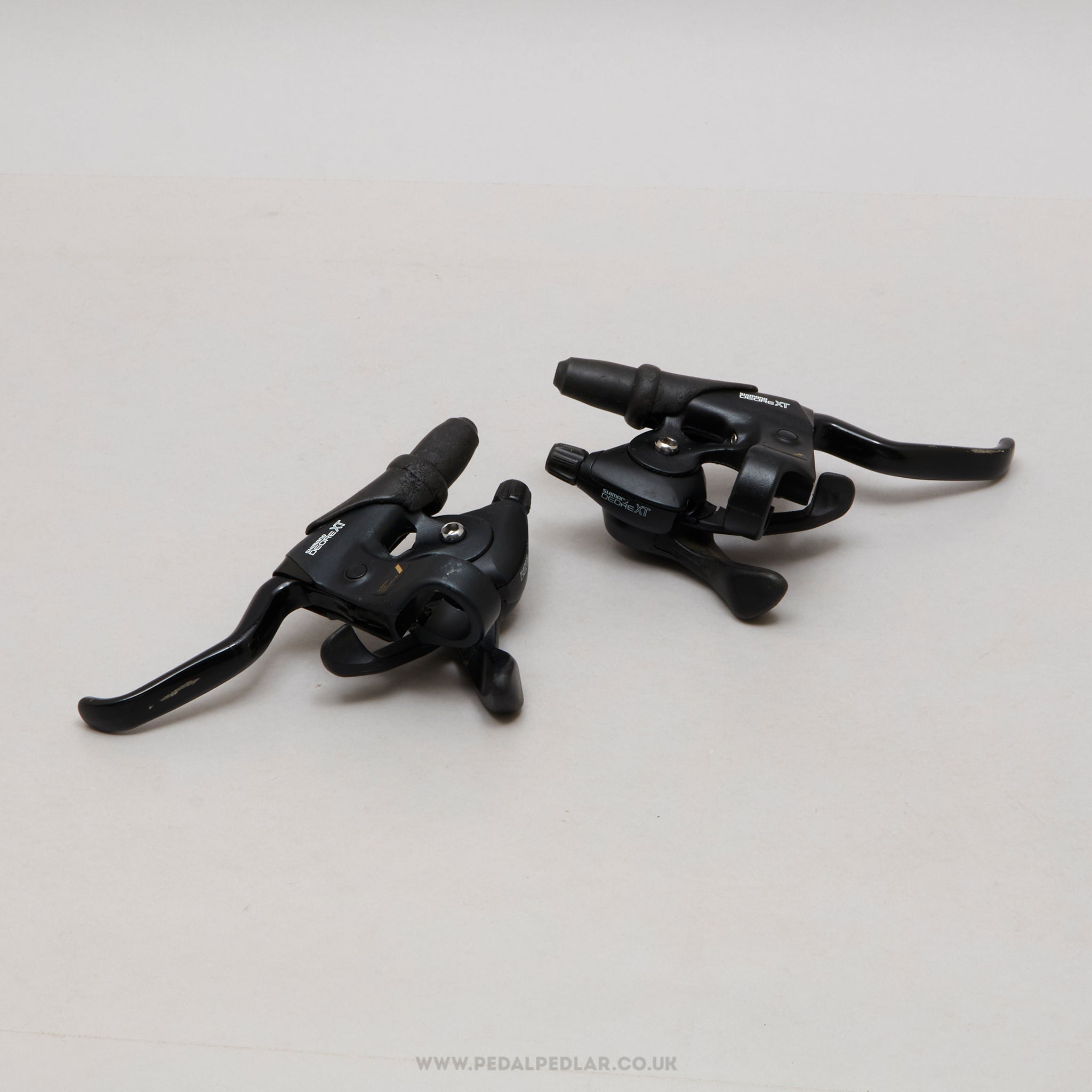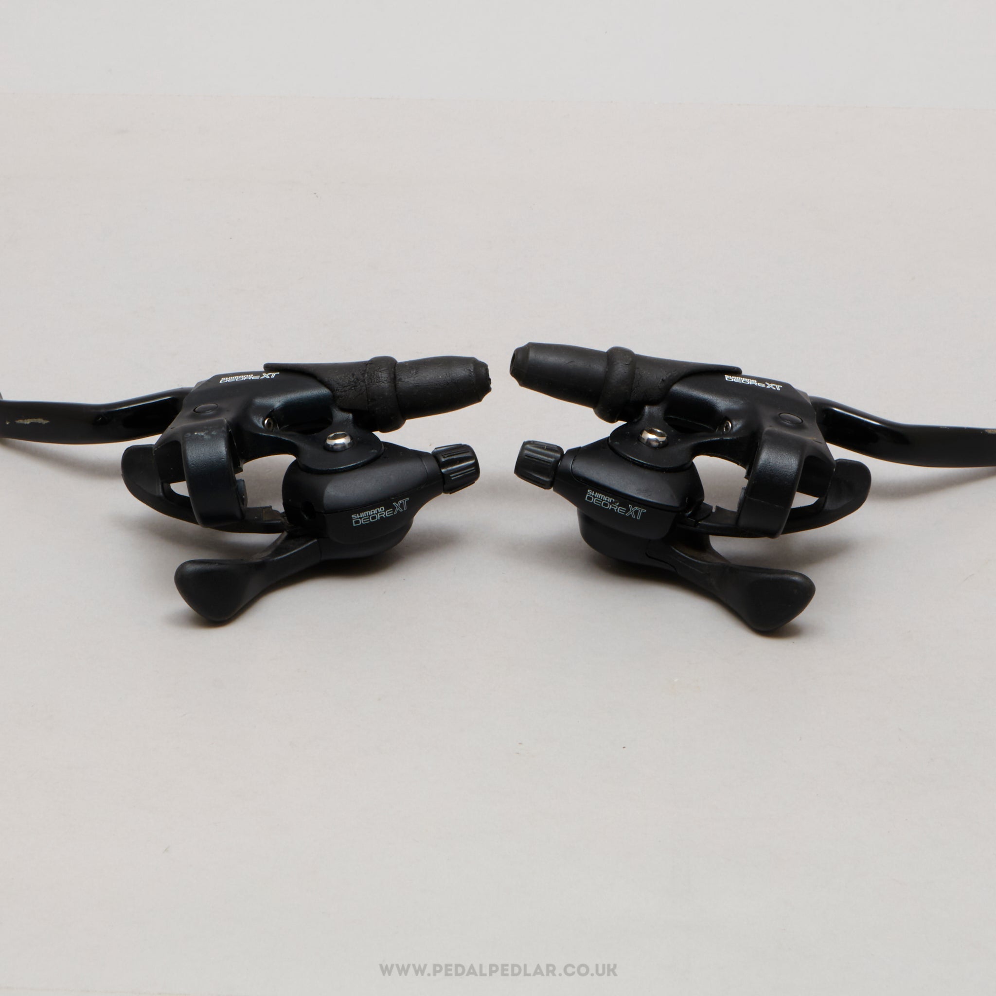 Shimano Deore XT shift/brake levers, hailing from Japan and in production during the 1990s. Made from aluminium/plastic and weighing in at 416 grams. A fine choice for keeping your classic bike authentic, but also great for any other compatible bike.