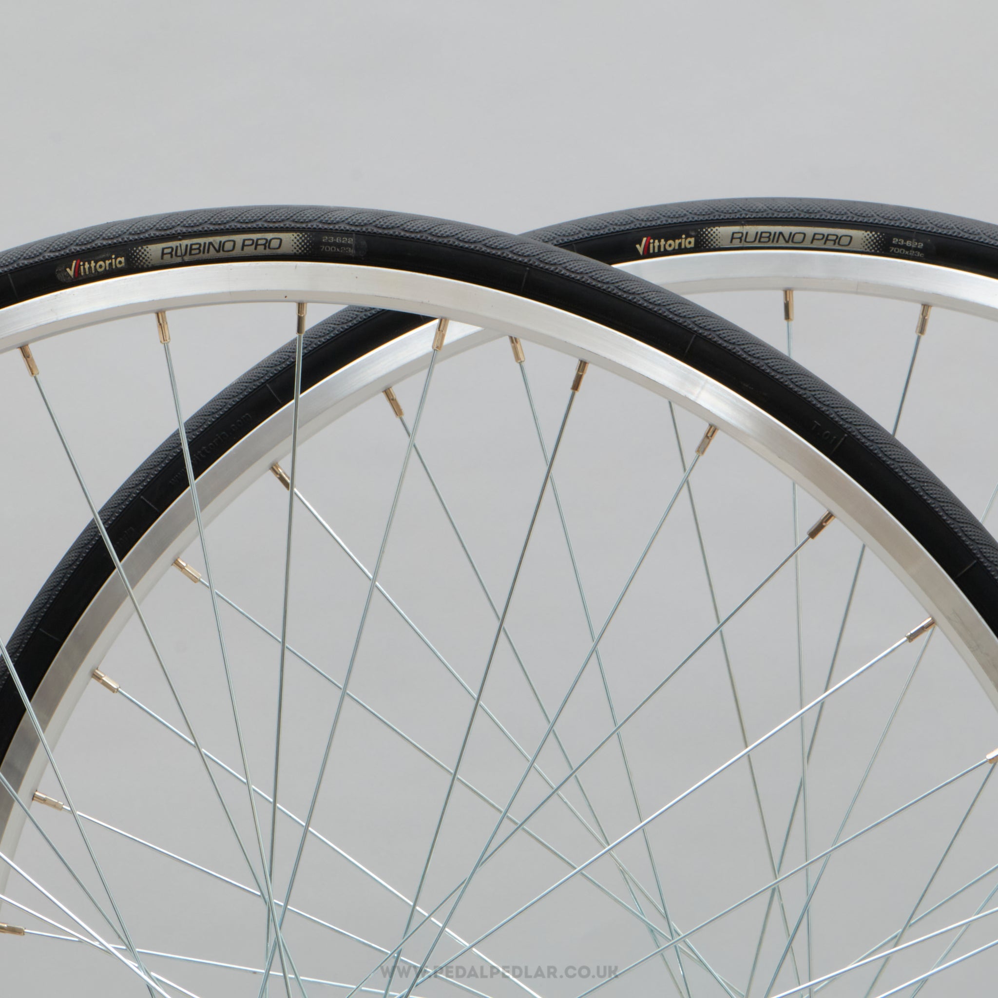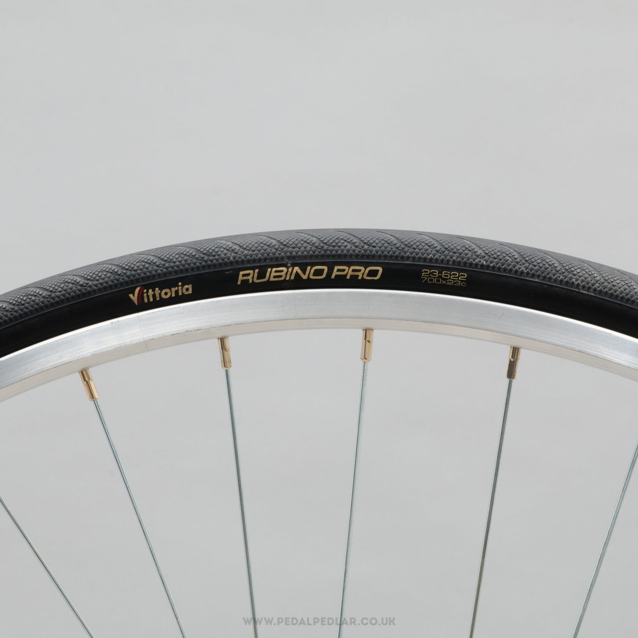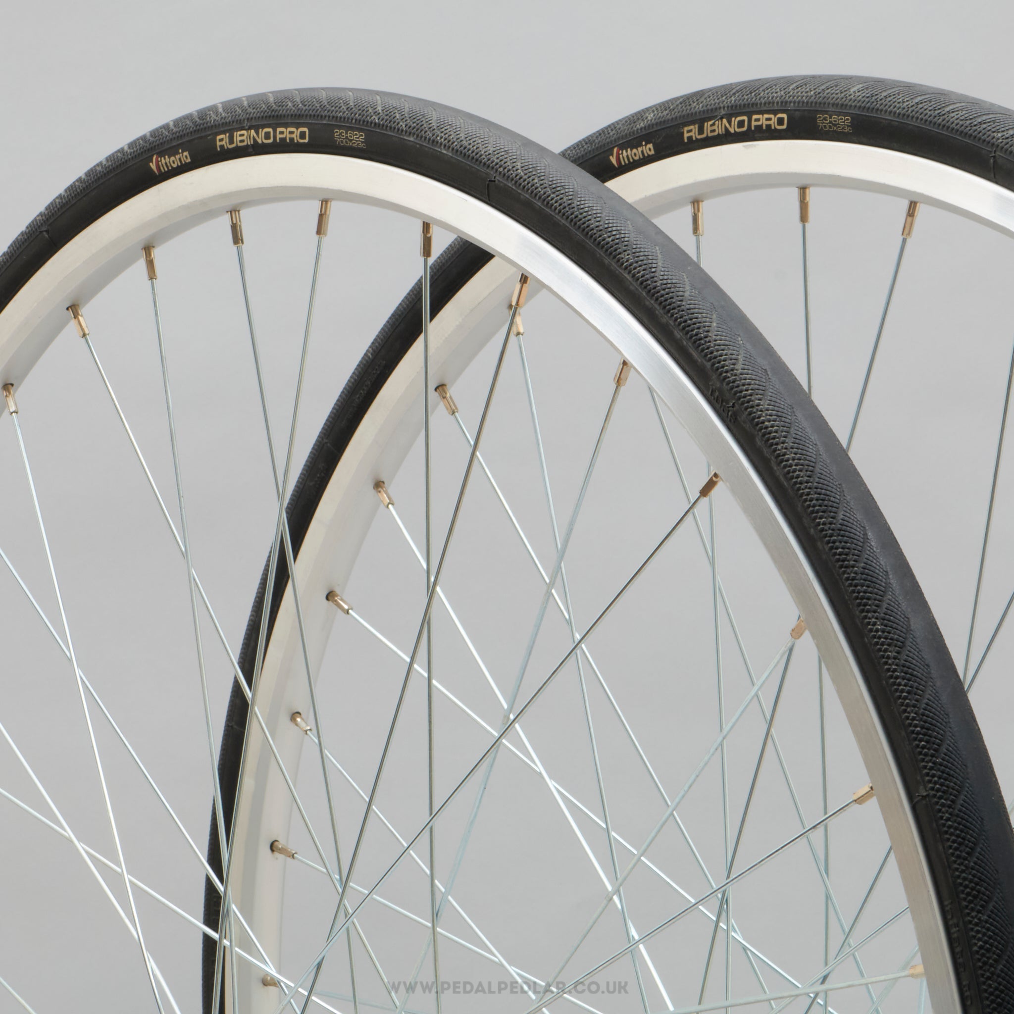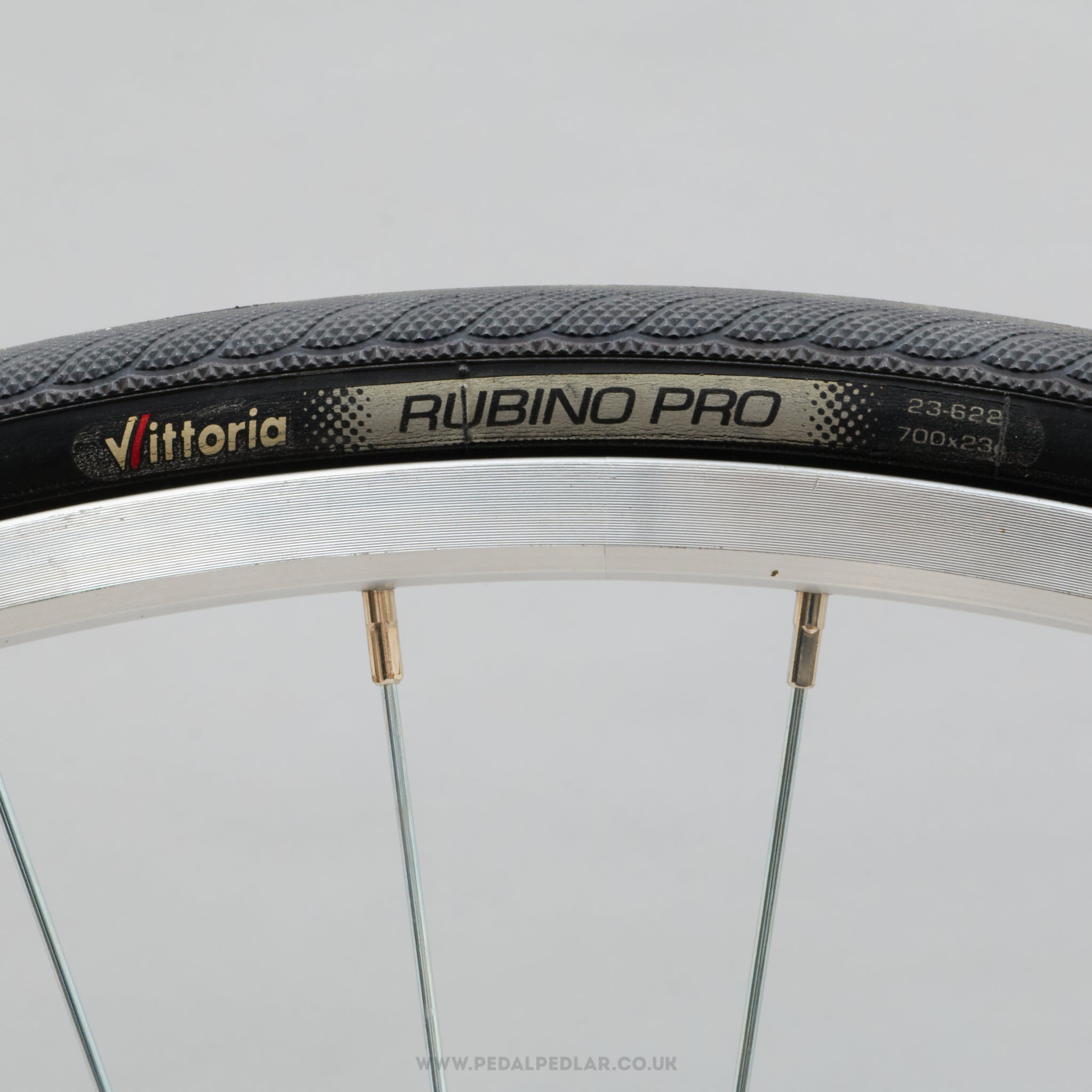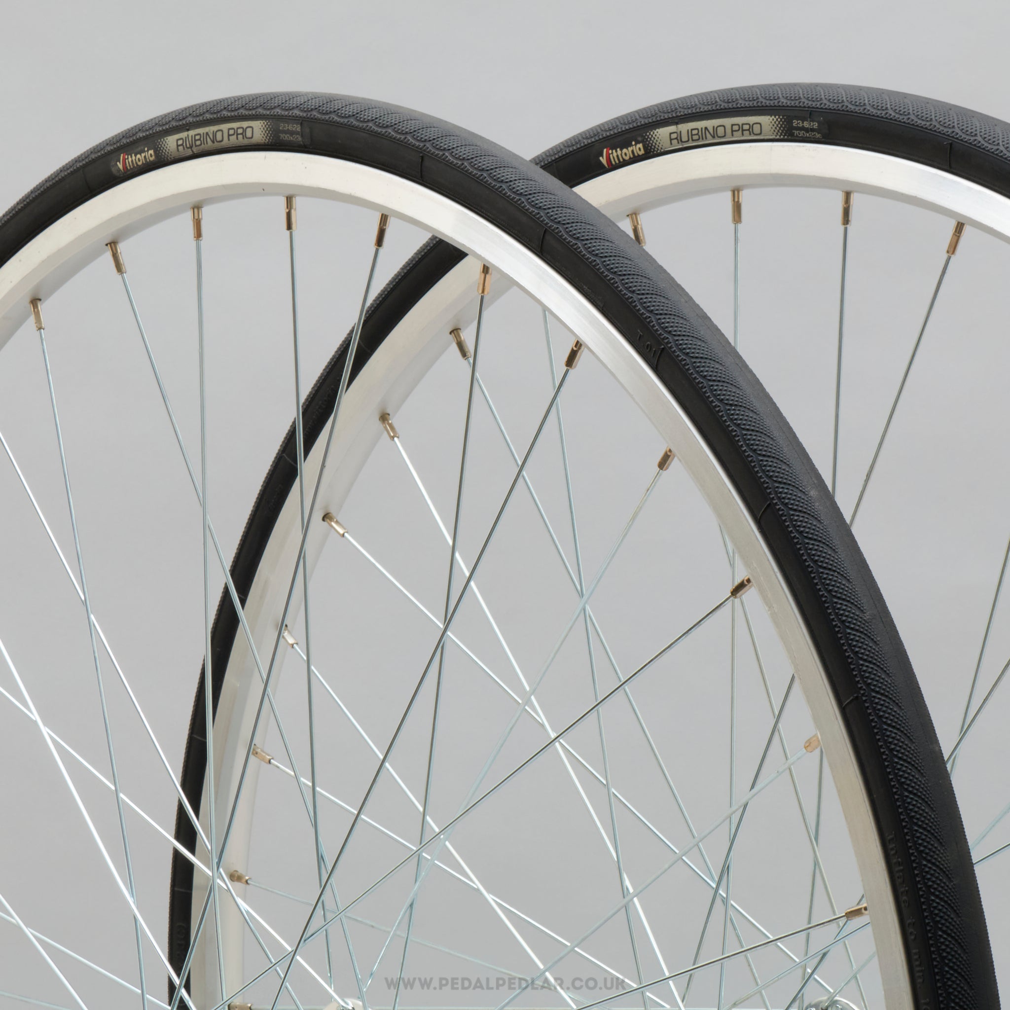 Vittoria Rubino Pro folding tyres, hailing from Italy and in production during the 2010s. Made from rubber and weighing in at 480 grams (the weight and price displayed are for a pair of tyres). A fine choice for keeping your bike authentic, but also great for any other compatible bike.