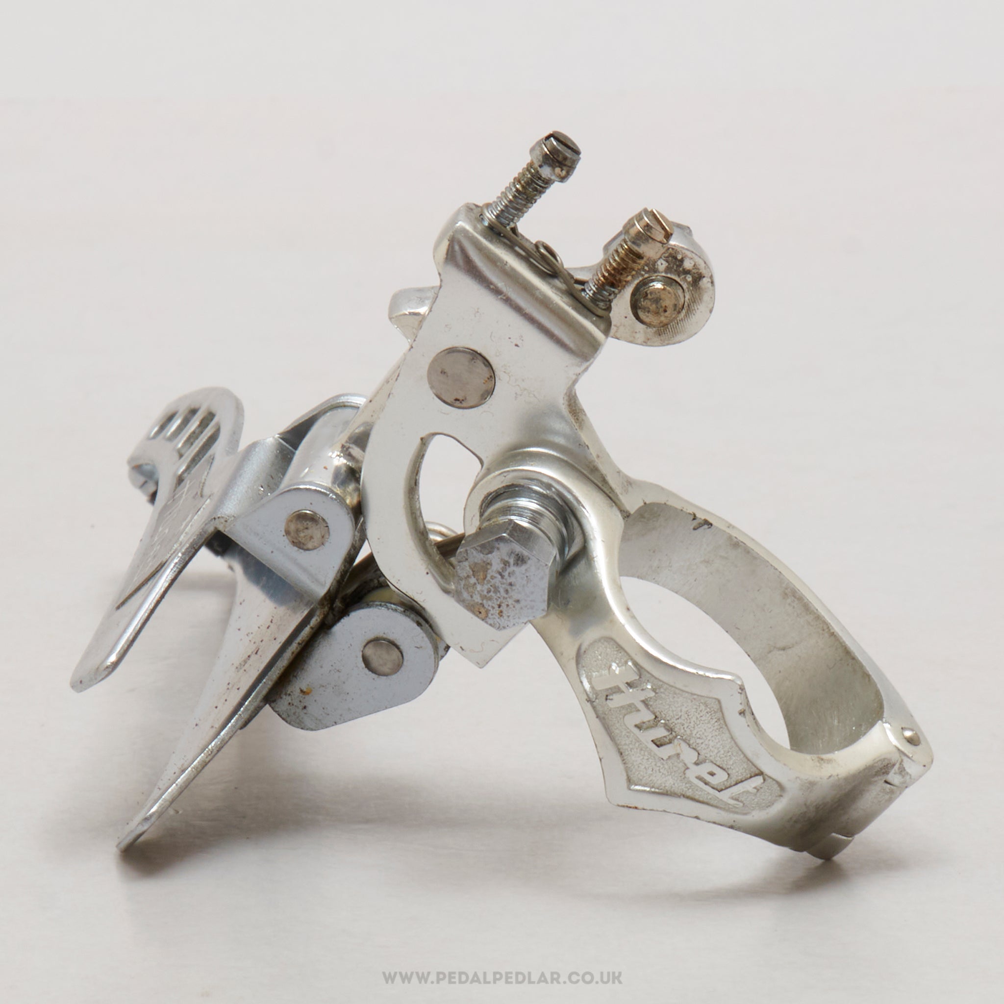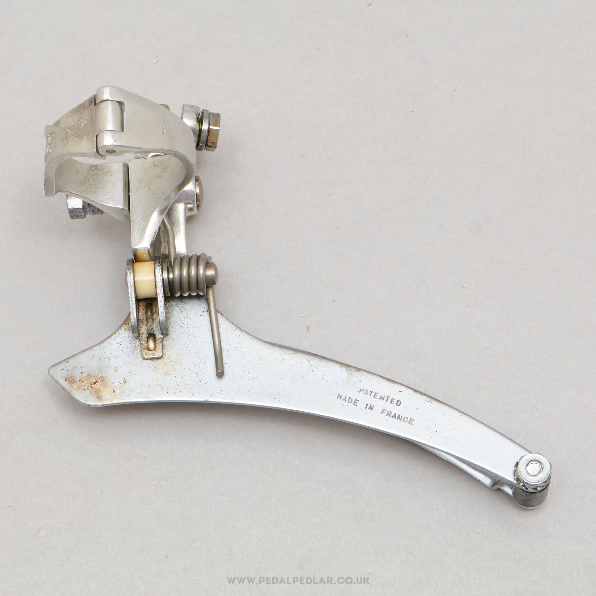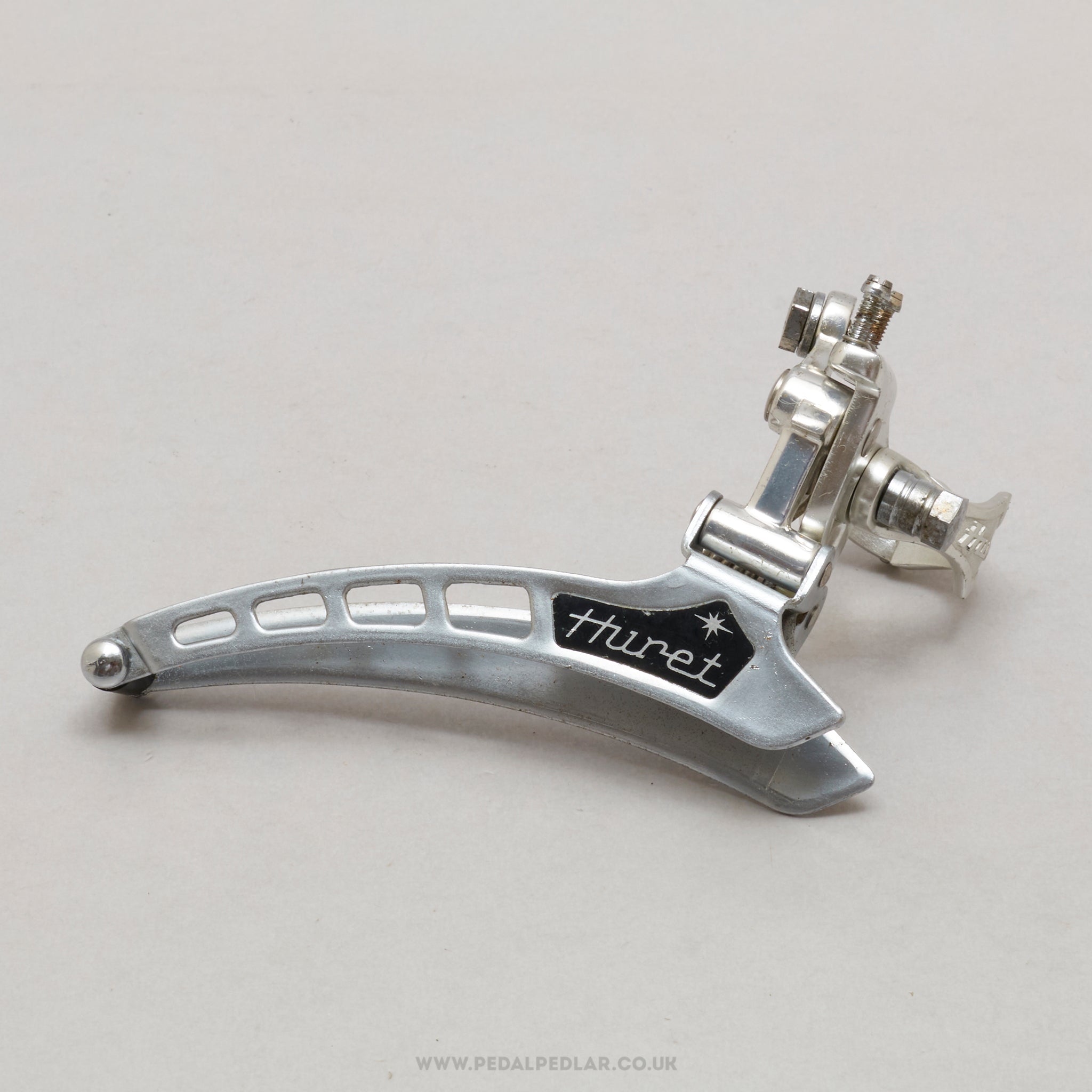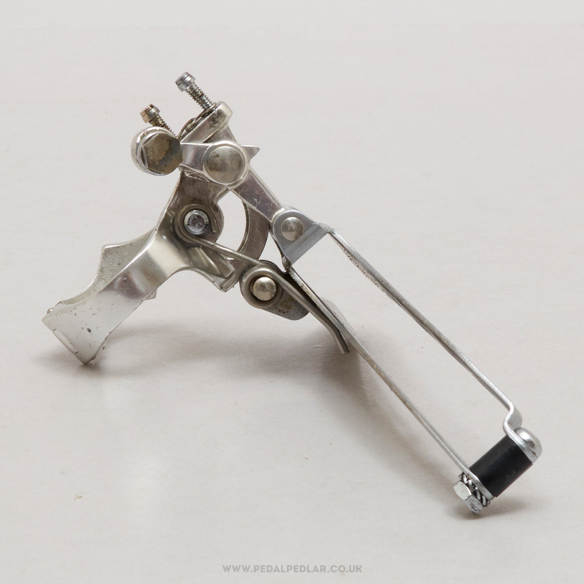 Huret Jubilee front derailleur (or mech, or changer if you prefer), hailing from France and in production from the 1970s to the 1980s. Made from aluminium/steel and weighing in at 82 grams. A fine choice for keeping your vintage bike authentic, but also great for any other compatible bike.