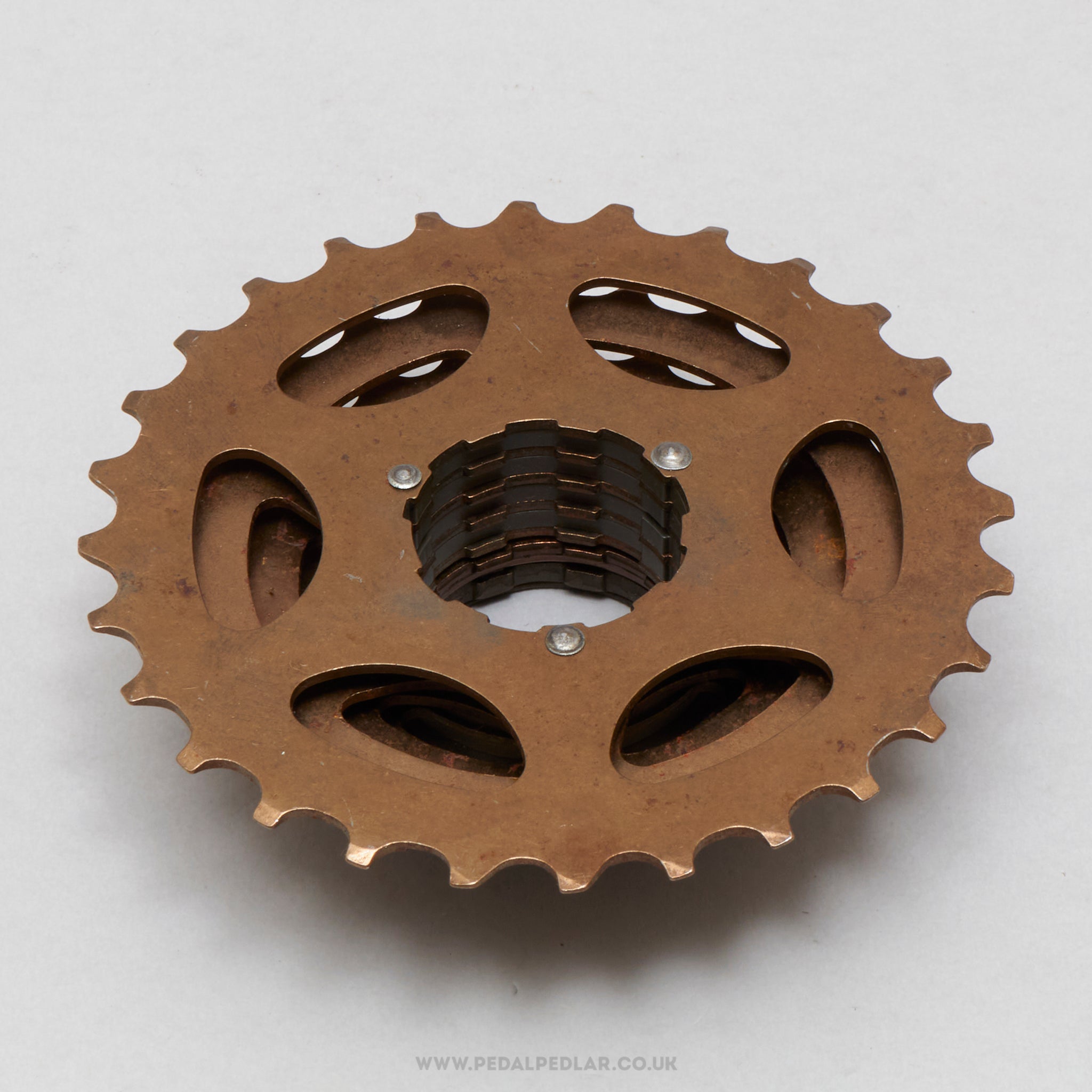 SR Suntour PF70 cassette, in production during the 2000s . Made from steel/plastic and weighing in at 358 grams. A fine choice for keeping your classic bike authentic, but also great for any other compatible bike too.