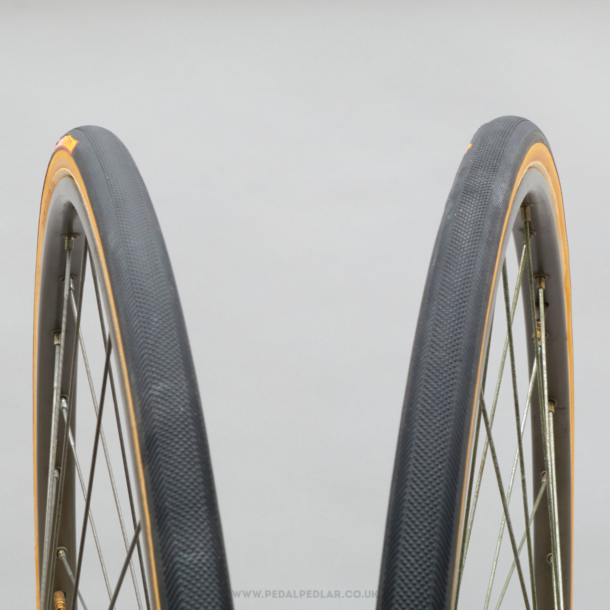 Hutchinson Excel tyres, hailing from France and in production during the 1990s (yet still new & unused after all this time!). Made from rubber/kevlar and weighing in at 624 grams (the weight and price displayed are for a pair of tyres). A fine choice for keeping your classic bike authentic, but also great for any other compatible bike.