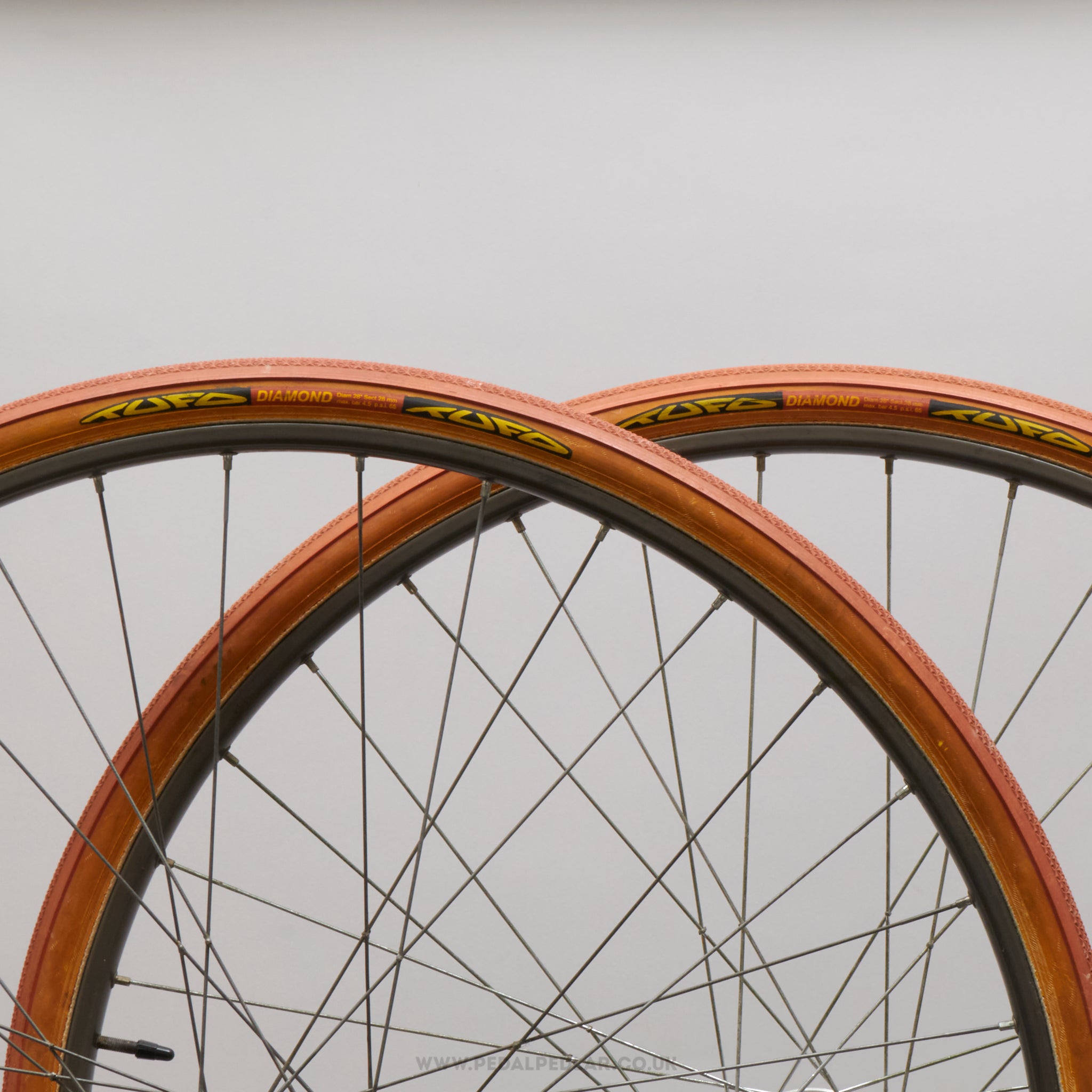 Tufo Diamond tubular/sprint tyres, hailing from Czechia and in production during the 2000s. Made from rubber and weighing in at 665 grams (the weight and price displayed are for a pair of tyres). A fine choice for keeping your classic bike authentic, but also great for any other compatible bike.