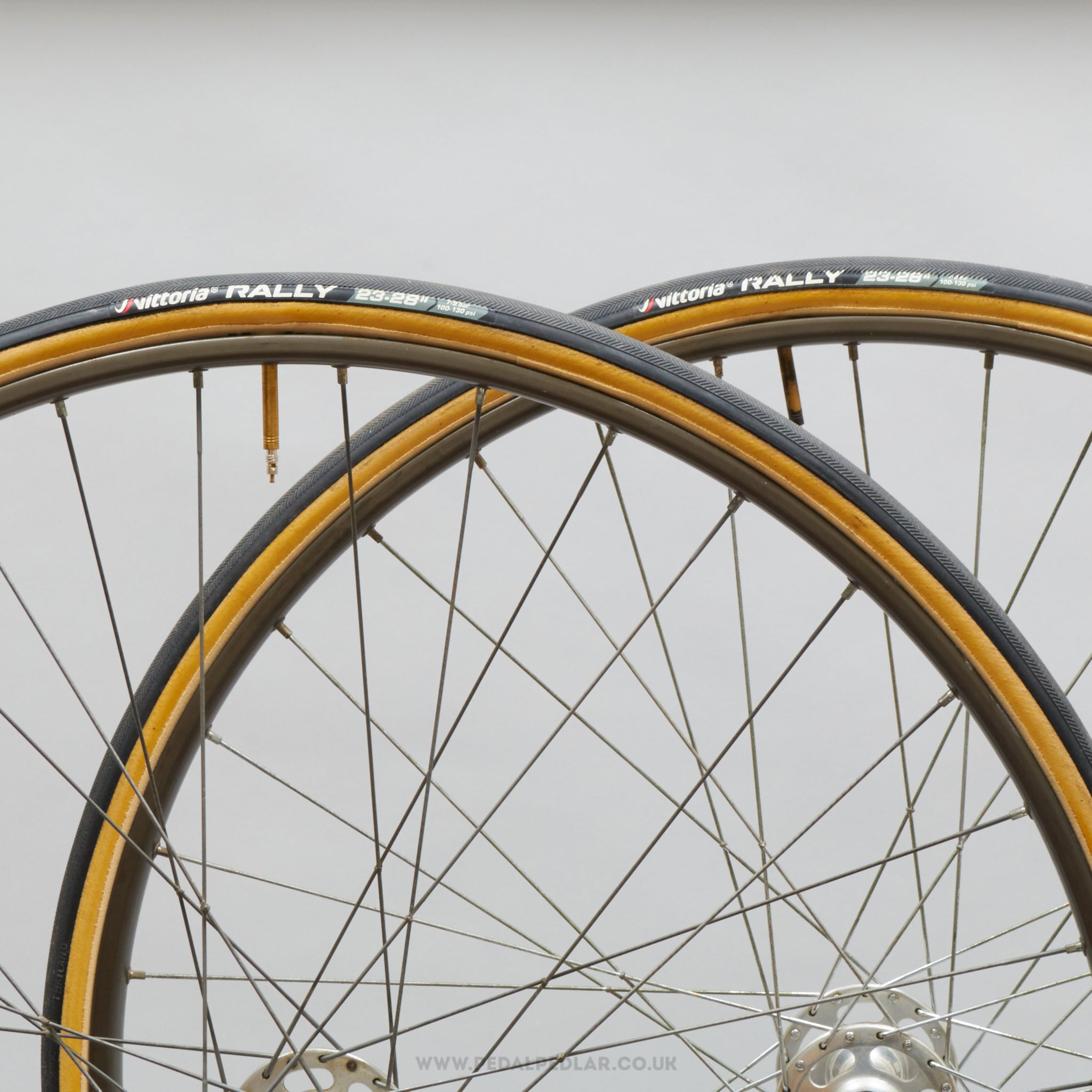 Vittoria Rally tubular/sprint tyres, hailing from Italy and in production from the 1990s to the 2000s. Made from rubber and weighing in at 615 grams (the weight and price displayed are for a pair of tyres). A fine choice for keeping your classic bike authentic, but also great for any other compatible bike.