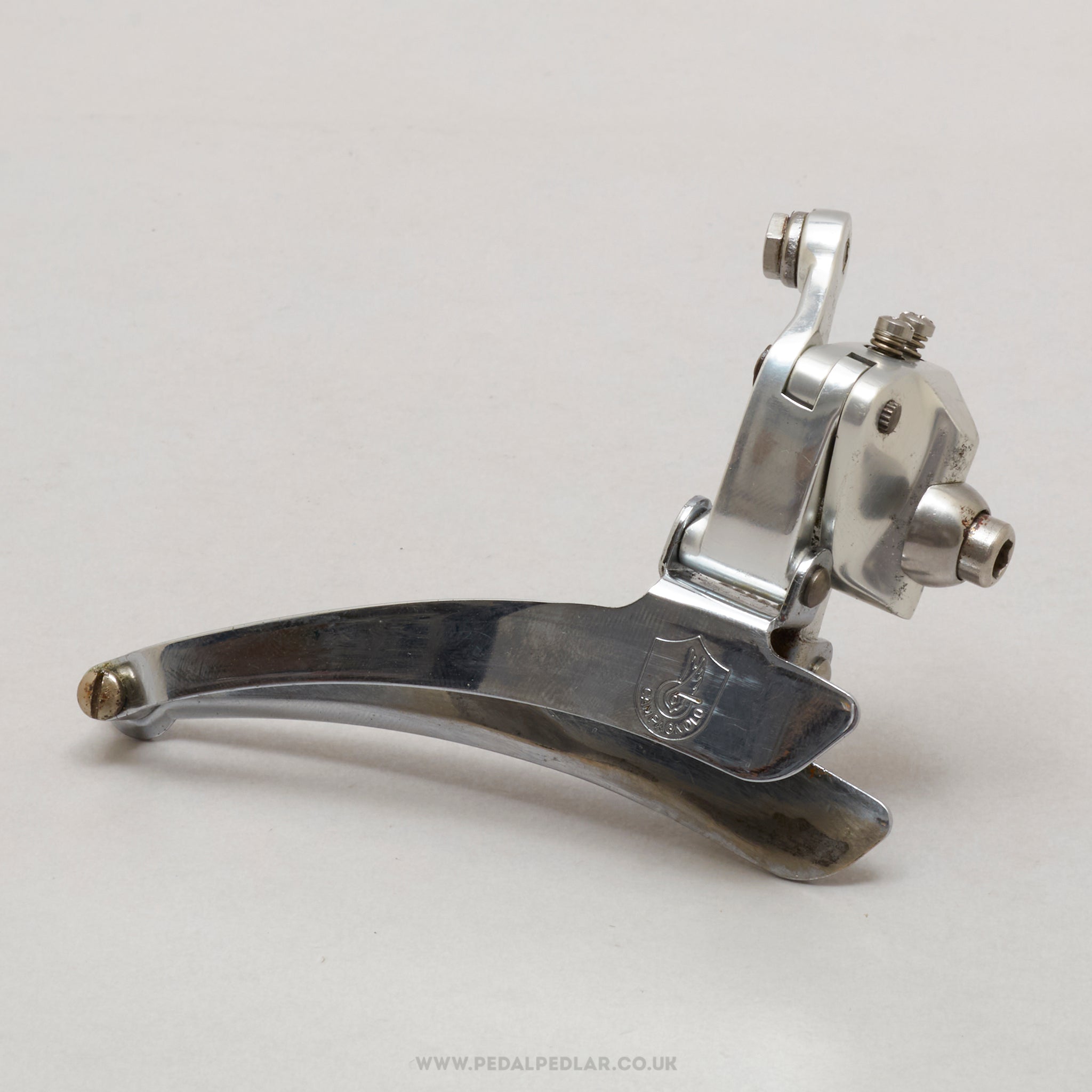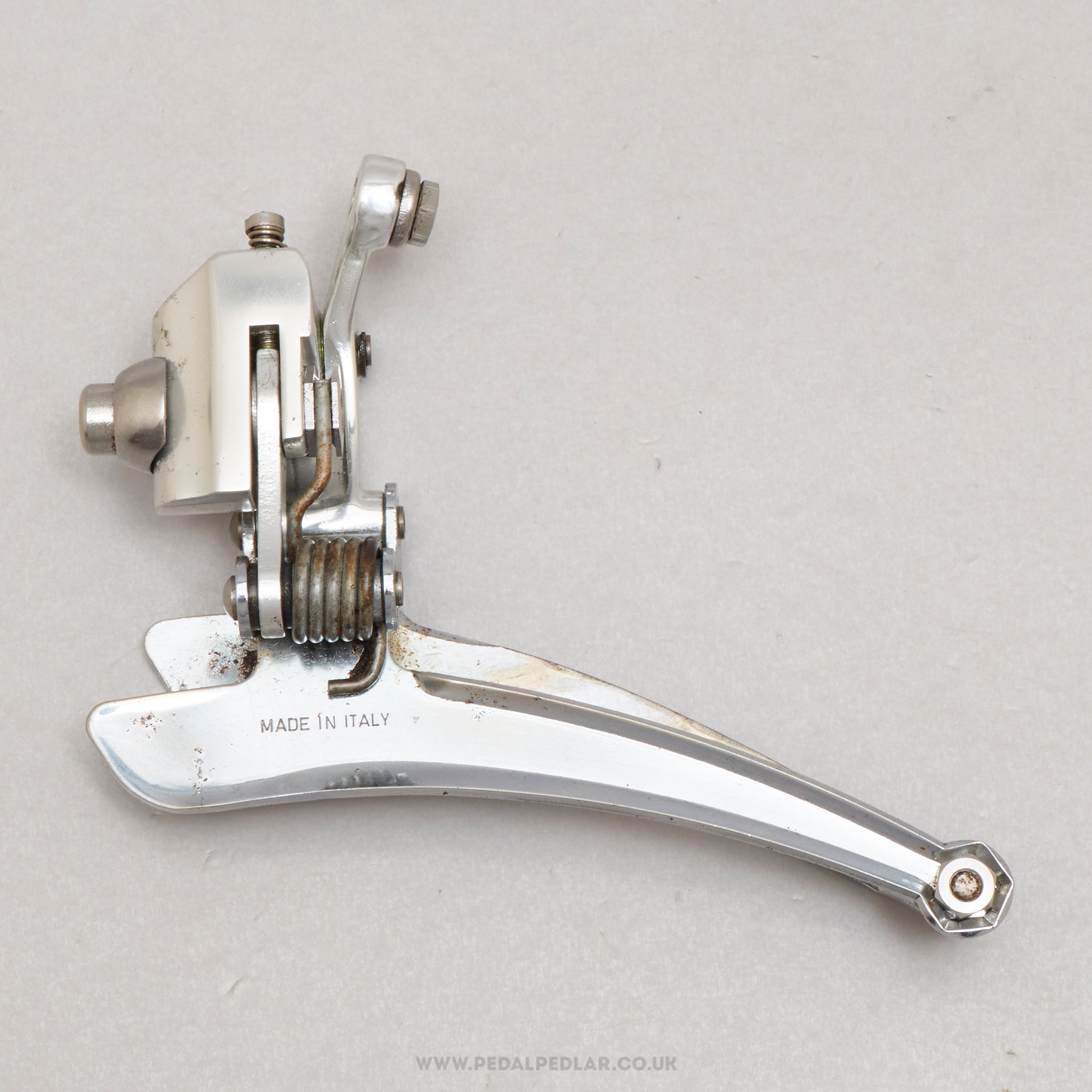 Campagnolo Nuovo/Super Record front derailleur (or mech, or changer if you prefer), hailing from Italy and in production during the 1970s. Made from aluminium/steel and weighing in at 92 grams. A fine choice for keeping your vintage bike authentic, but also great for any other compatible bike.