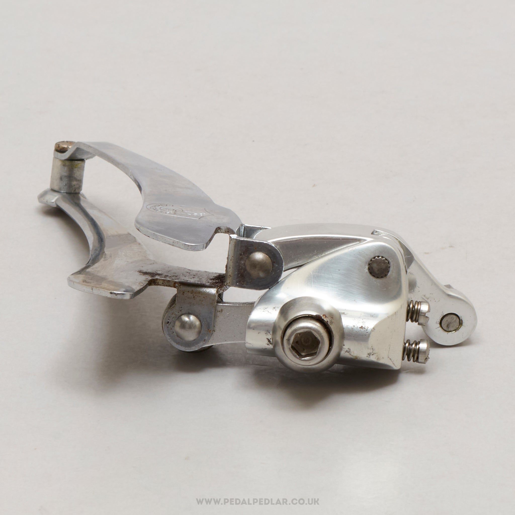 Campagnolo Super Record front derailleur (or mech, or changer if you prefer), hailing from Italy and in production during the 1980s. Made from aluminium/steel and weighing in at 89 grams. A fine choice for keeping your vintage bike authentic, but also great for any other compatible bike.