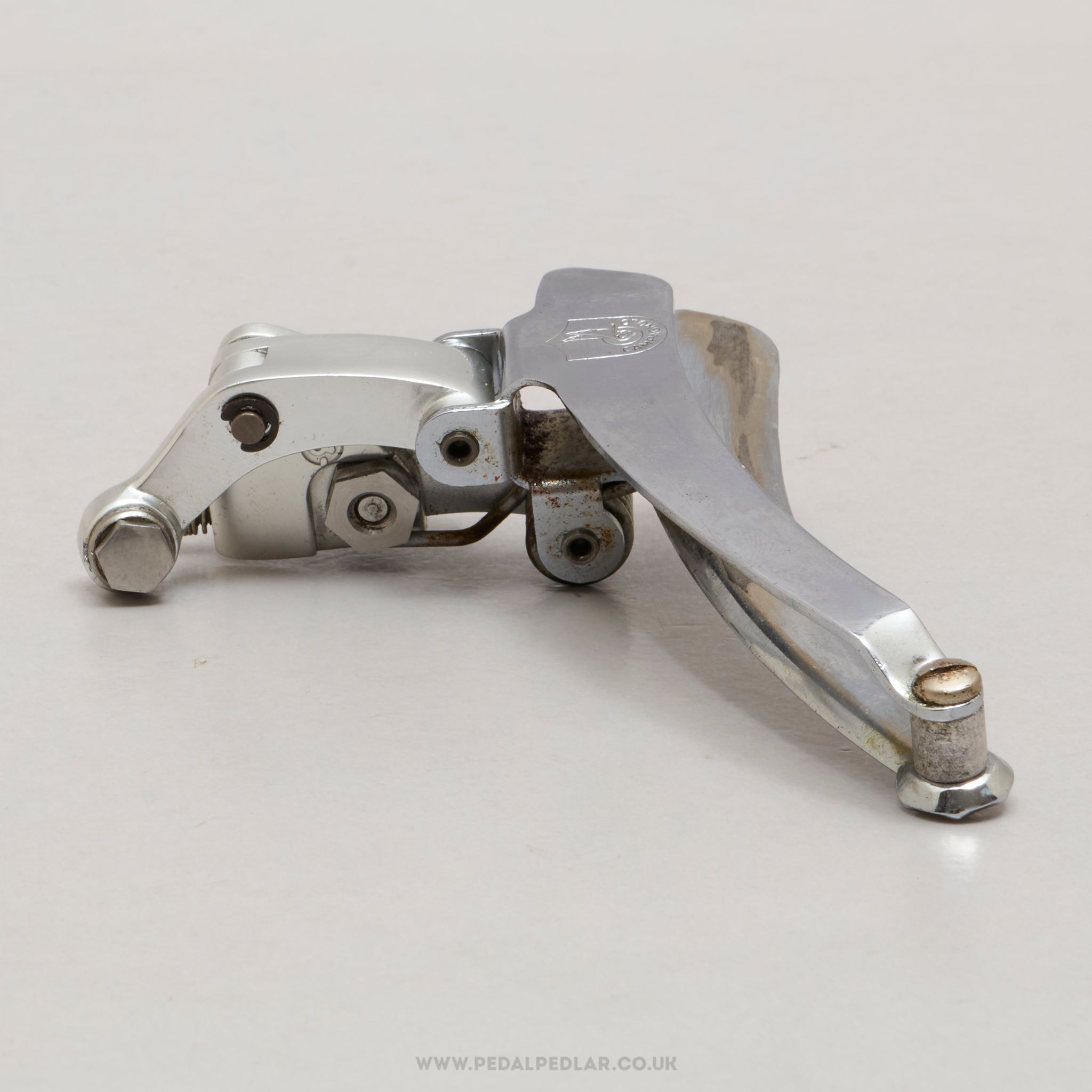 Campagnolo Nuovo/Super Record front derailleur (or mech, or changer if you prefer), hailing from Italy and in production during the 1970s. Made from aluminium/steel and weighing in at 100 grams. A fine choice for keeping your vintage bike authentic, but also great for any other compatible bike.
