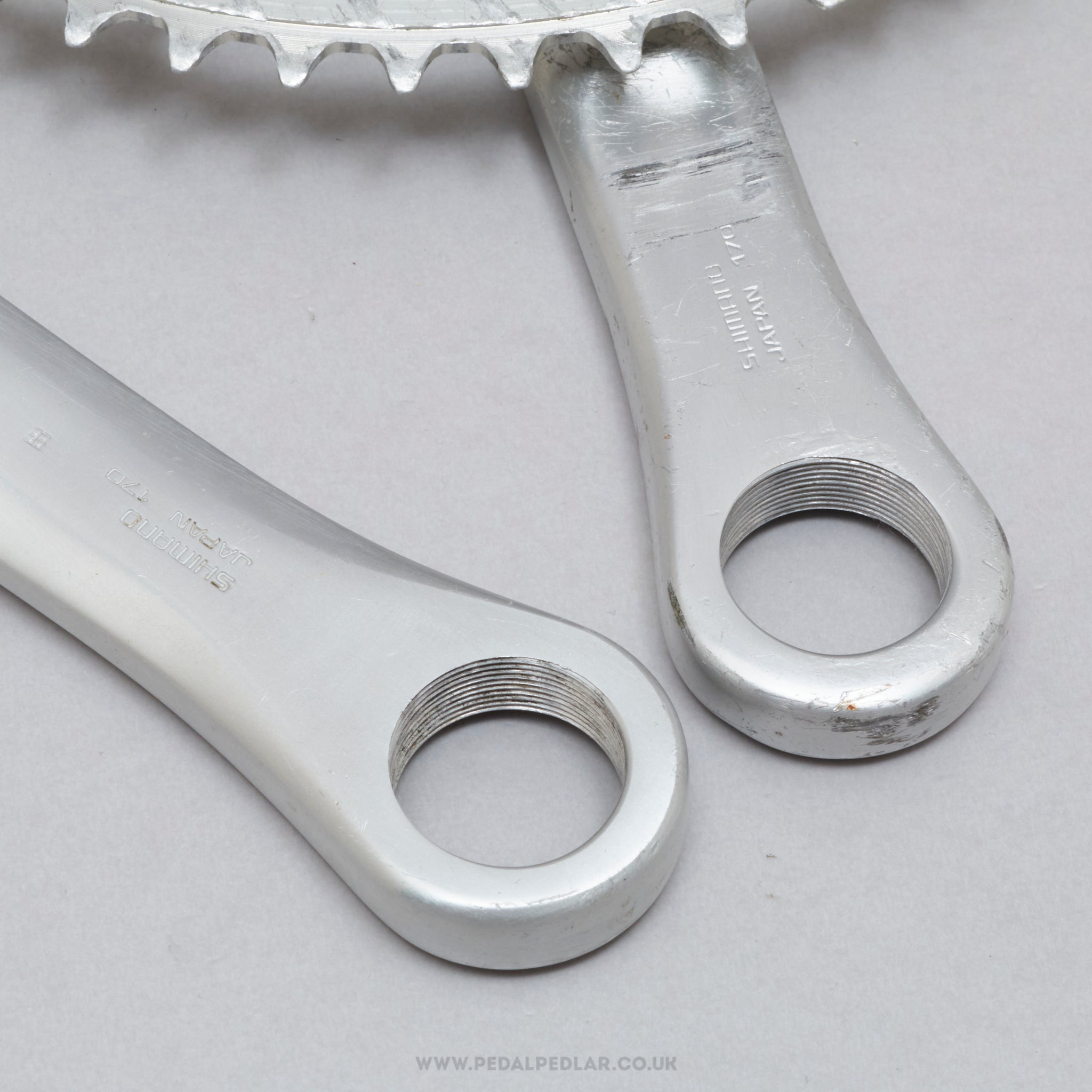 Shimano Dura-Ace EX chainset (or crankset, if you prefer), hailing from Japan and dating back to 1980. Made from aluminium and weighing in at 550 grams - incredibly lightweight for a chainset at that time. A fine choice for keeping your vintage bike authentic, but also great for any other compatible bike.