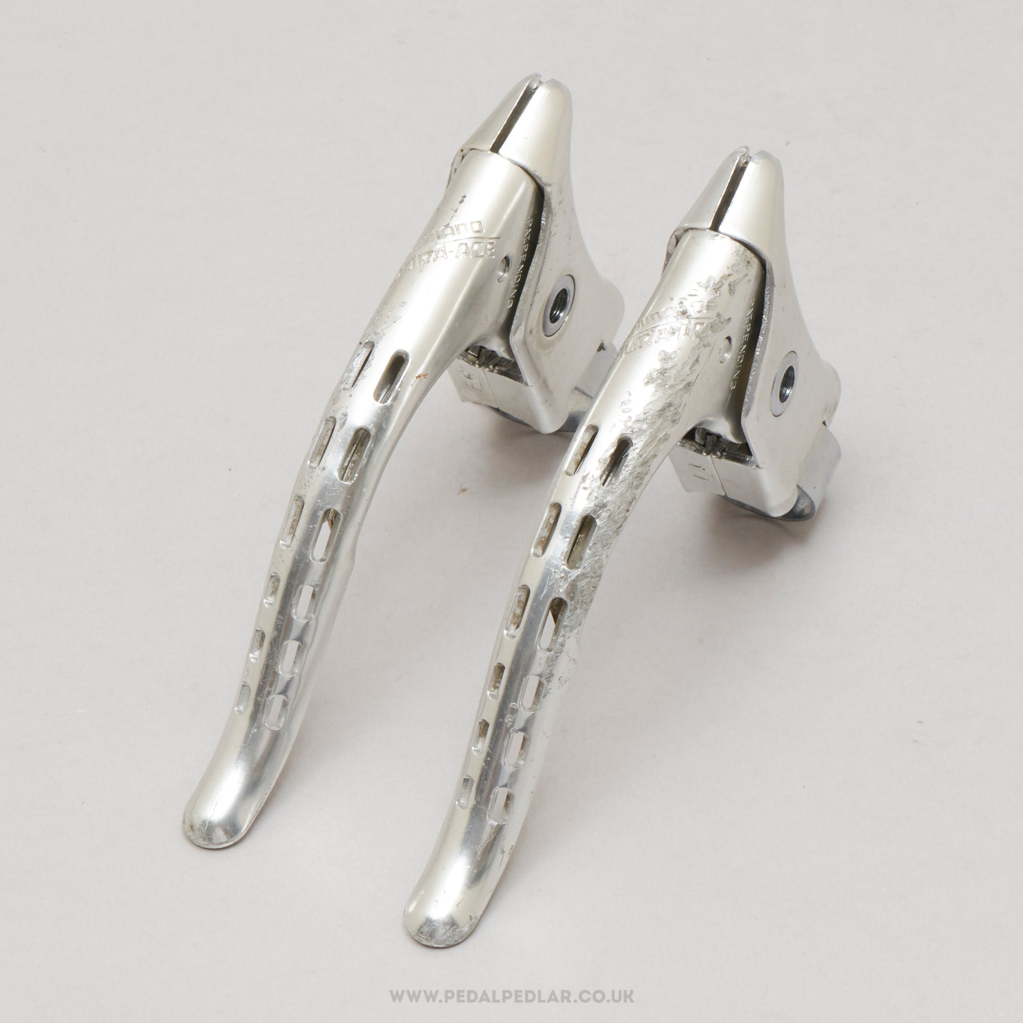 Shimano Dura-Ace drop bar brake levers (or handles if you prefer), hailing from Japan and in production during the 1980s. Made from aluminium/plastic/rubber and weighing in at 227 grams. A fine choice for keeping your vintage bike authentic, but also great for any other compatible bike.
