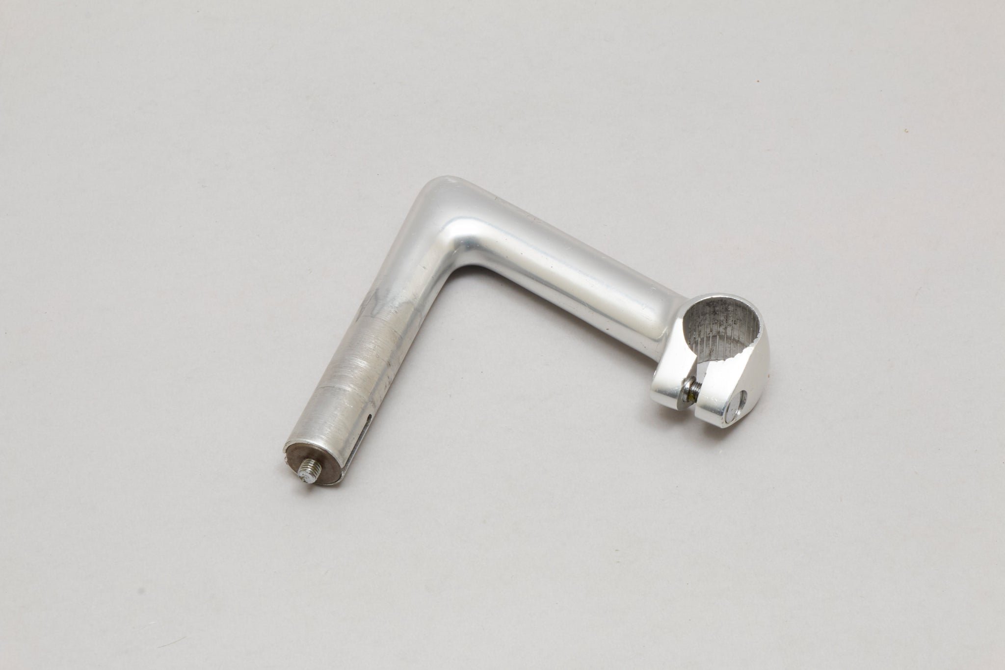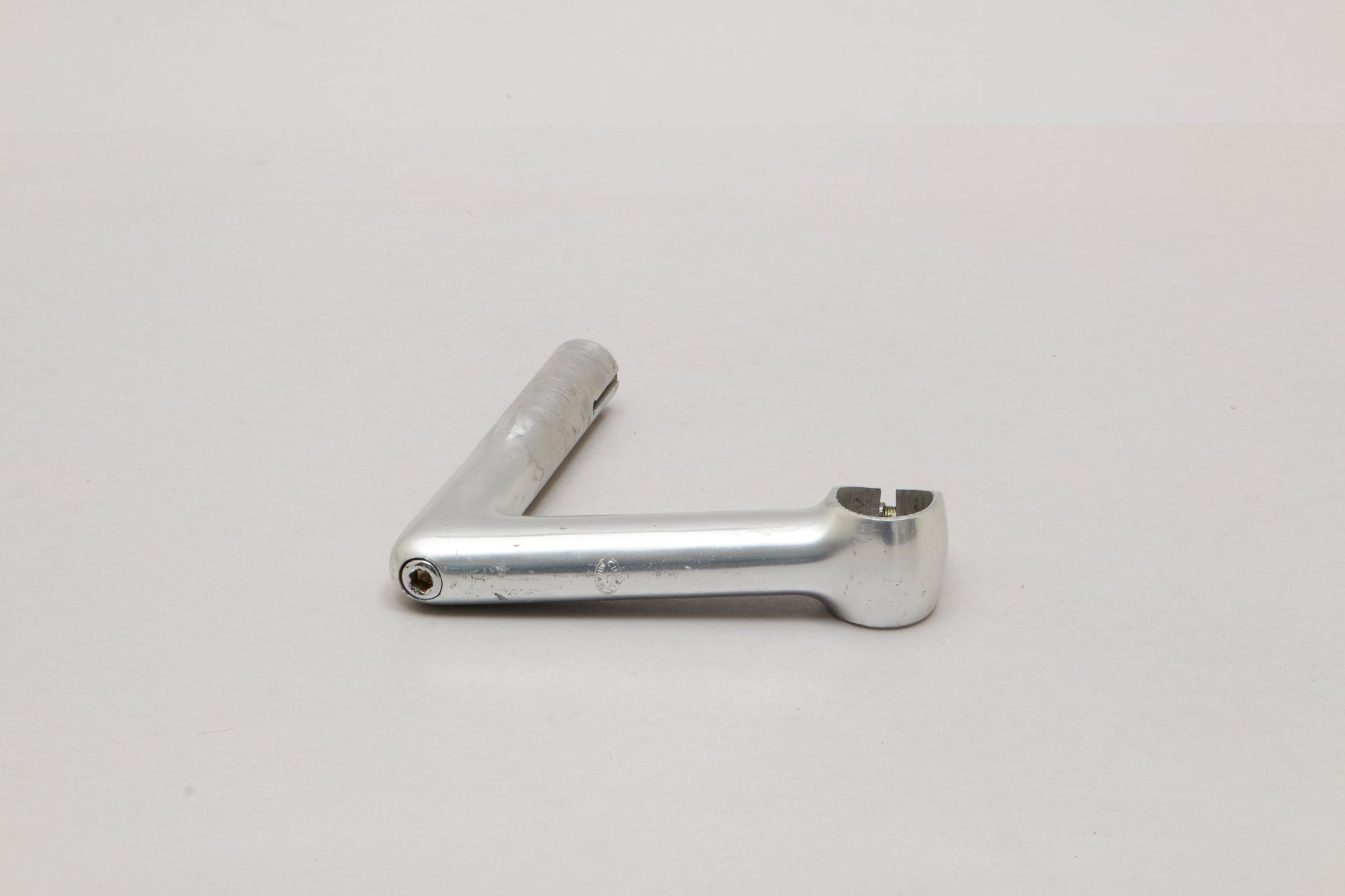 Cinelli Model 1A handlebar stem (or gooseneck if you prefer), hailing from Italy and in production during the 1970s. Made from aluminium/steel and weighing in at 275 grams - pretty lightweight for a stem at that time. A fine choice for keeping your vintage bike authentic, but also great for any other compatible bike.