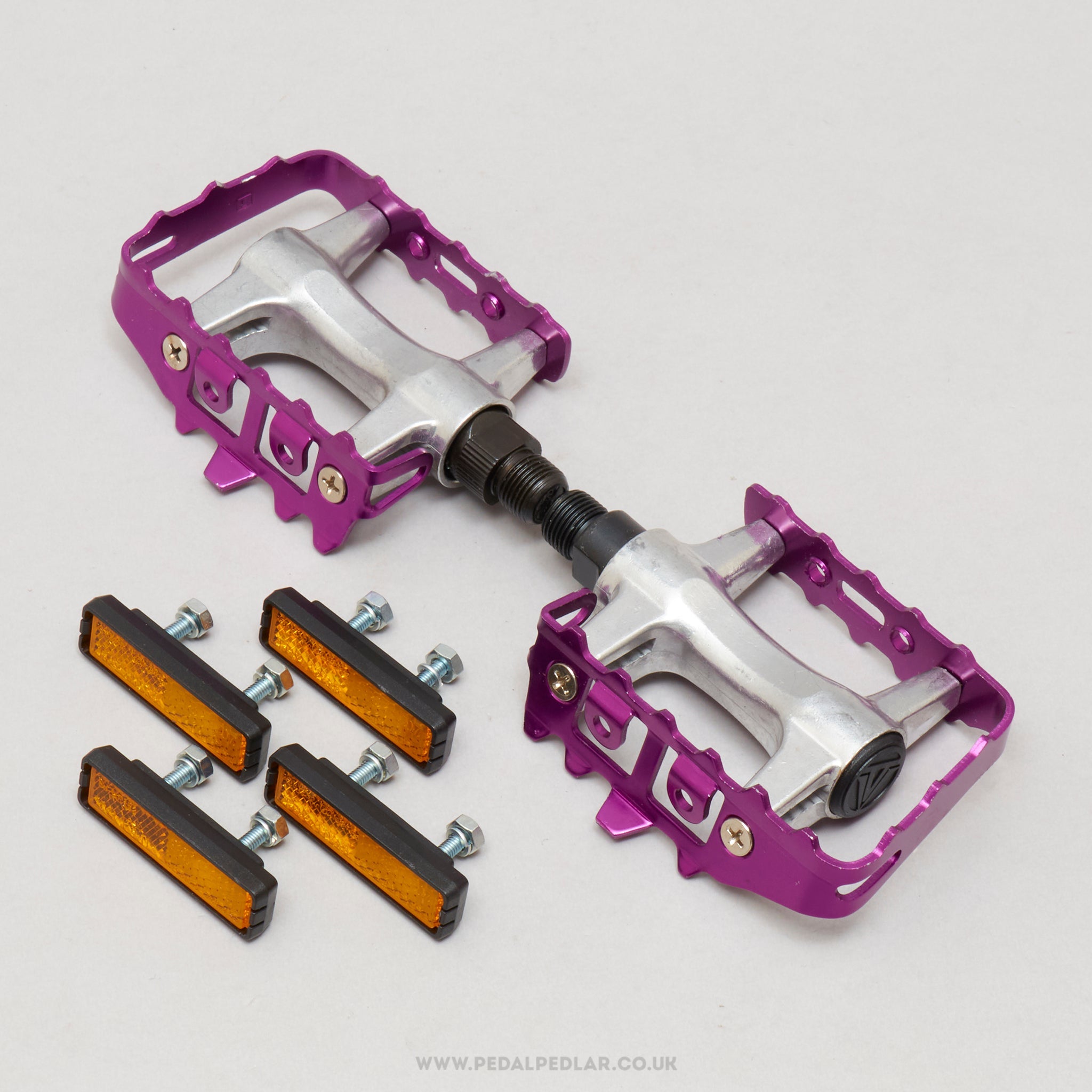 Pedal Type - this is just a guide to give you an idea of the pedal type, but any pedal can technically be used for any purpose. Track pedals are designed without the pointed 'quill' for safety though, so it's best to only use track pedals for this purpose. Most track pedals, along with quill & aero road pedals are designed to be used with toe clips & straps for best performance.
