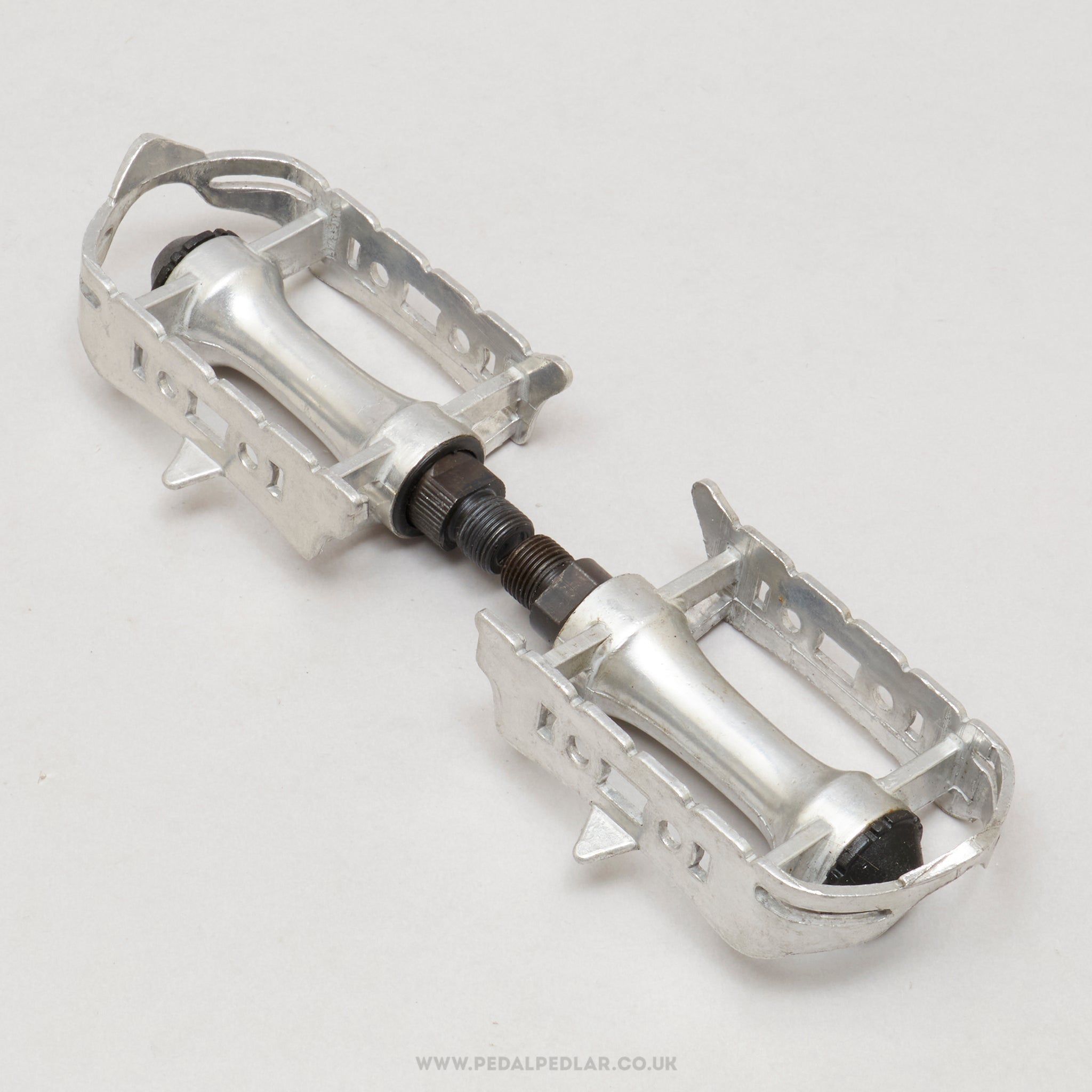 Unbranded vintage pedals, most likely in production during the 1980s (yet still new & unused after all this time). Made from aluminium/steel and weighing in at 345 grams - pretty lightweight for pedals at that time. A fine choice for keeping your vintage bike authentic, but also great for any other compatible bike.