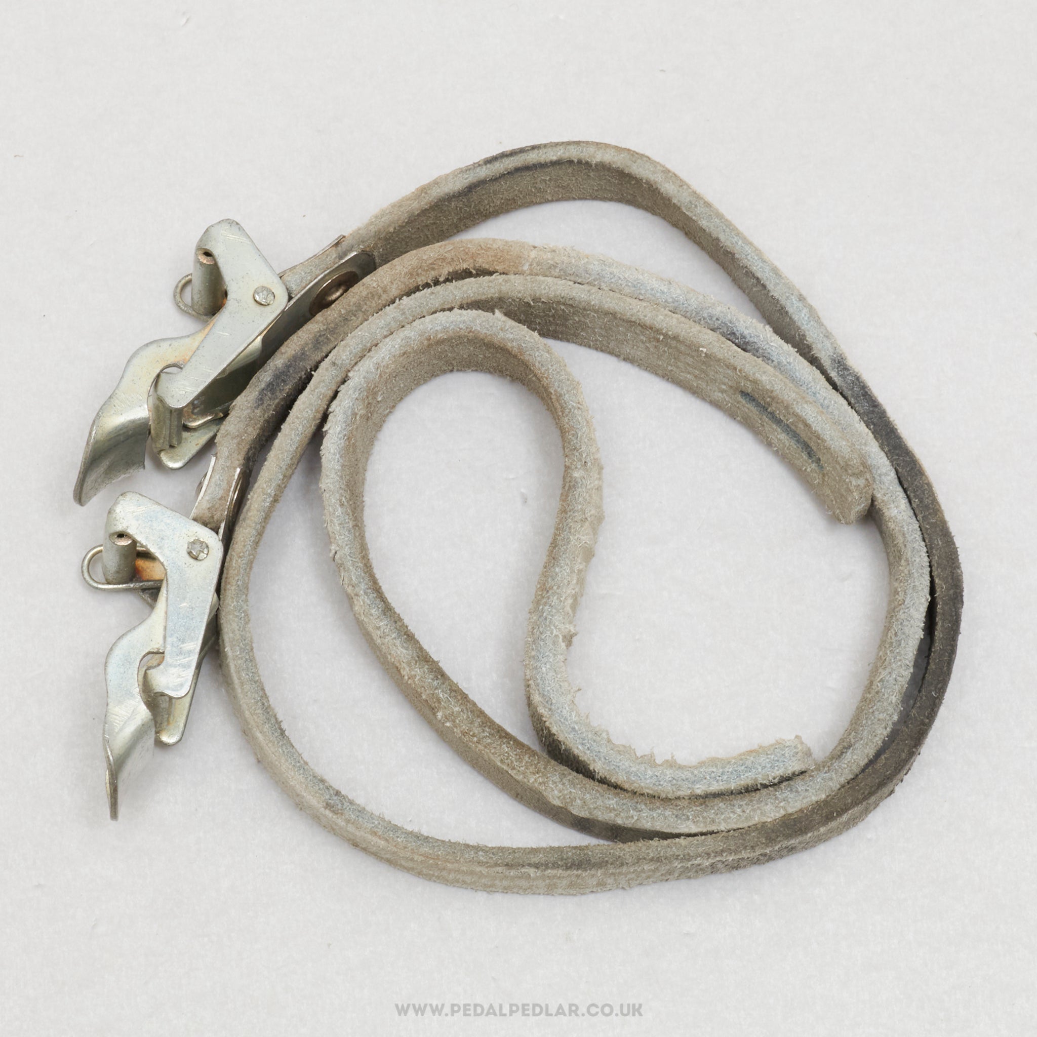 Unbranded vintage toe straps (or pedal straps if you prefer), most likely in production from the 1970s to the 1980s. The straps are grey in colour and made from leather, the perfect finishing touch for your vintage bike, but great for bikes of the non-vintage variety too of course!