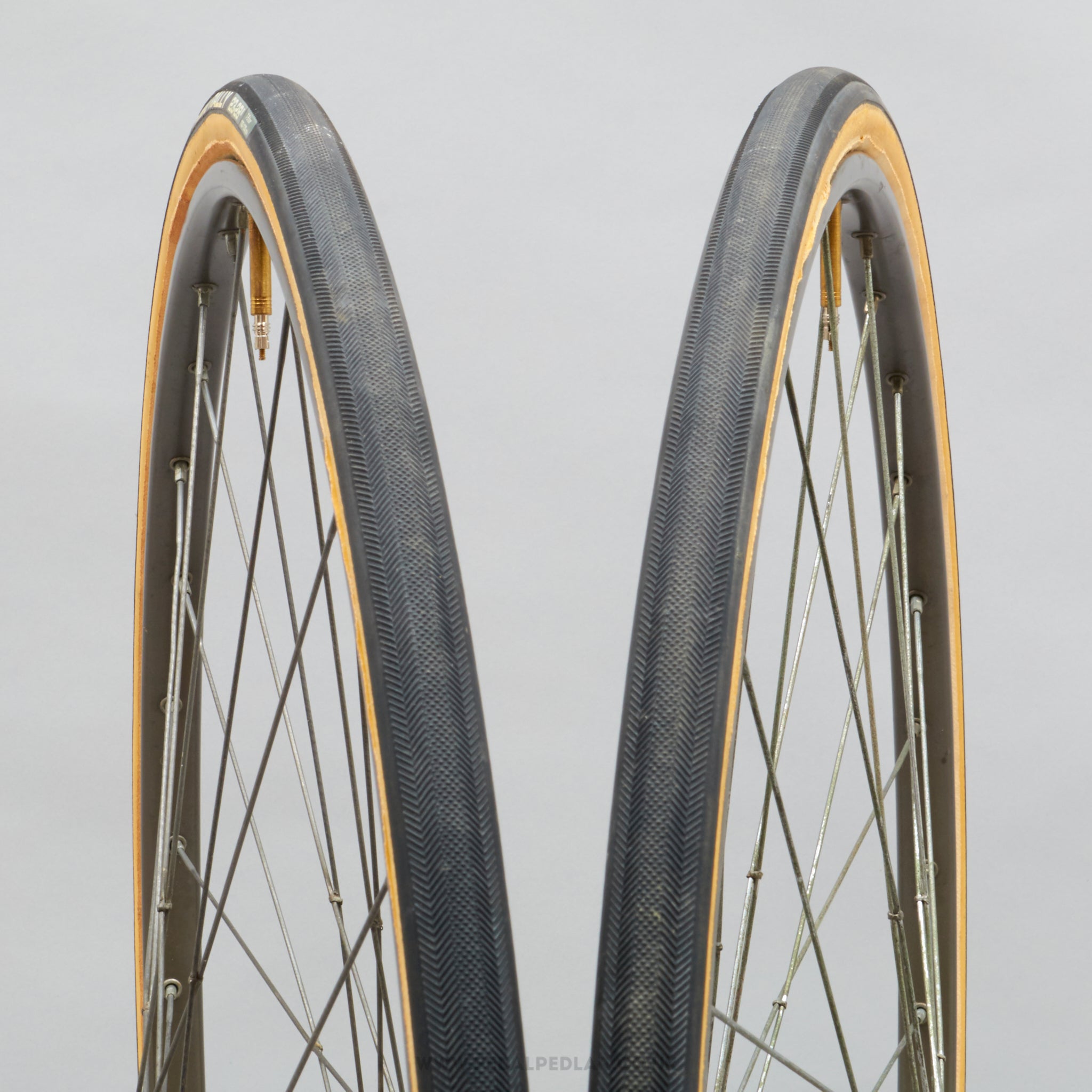 Vittoria Open All Weather Twin Tread folding tyres, hailing from Italy and in production during the 1990s (yet still new & unused after all this time). Made from rubber/kevlar and weighing in at 583 grams (the weight and price displayed are for a pair of tyres). A fine choice for keeping your classic bike authentic, but also great for any other compatible bike.