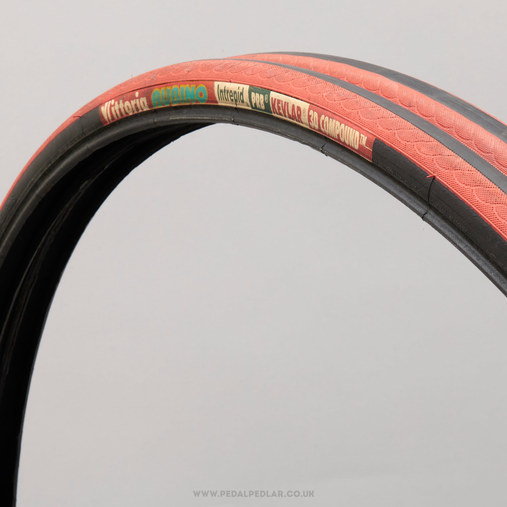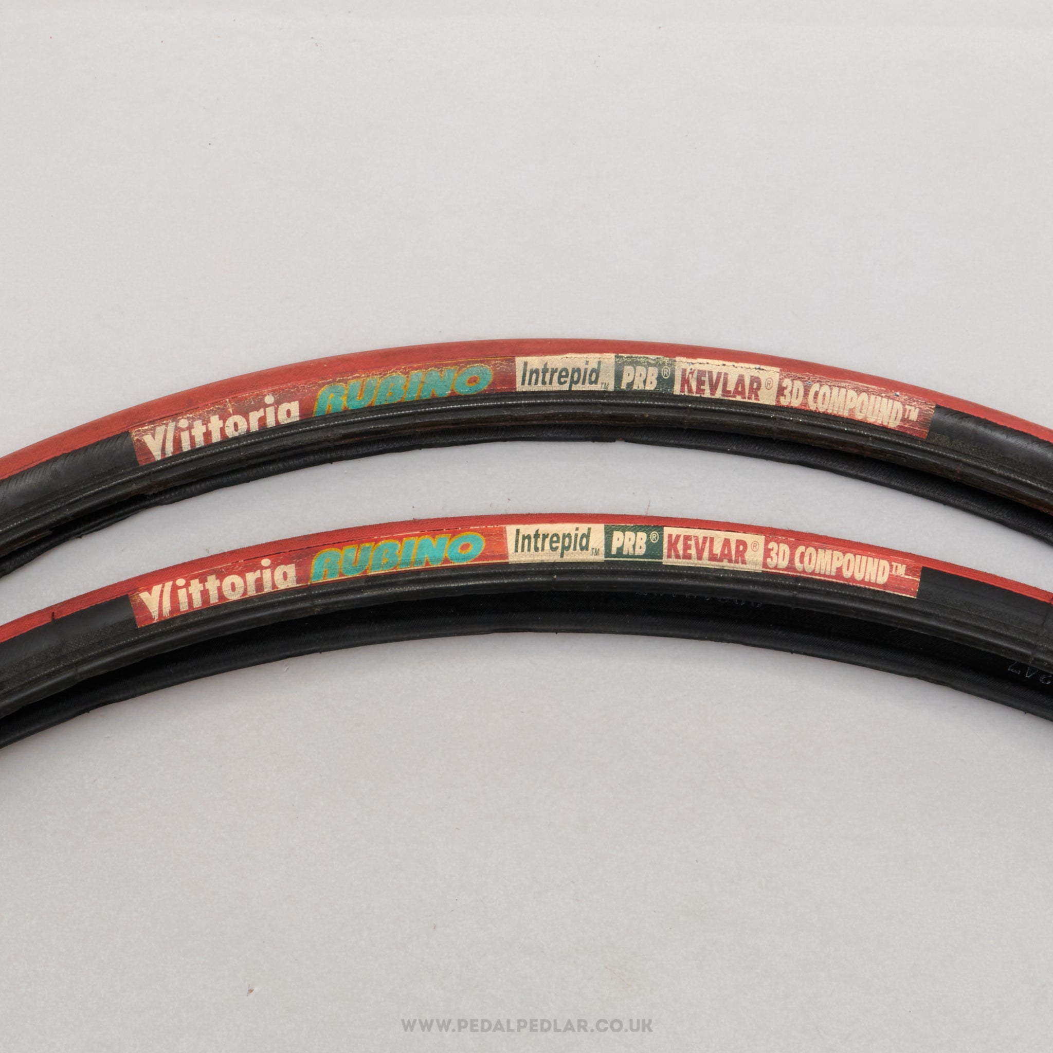 Vittoria Rubino Intrepid tyres, hailing from Italy and in production from the 1990s to the 2000s. Made from rubber and weighing in at 685 grams (the weight and price displayed are for a pair of tyres). A fine choice for keeping your classic bike authentic, but also great for any other compatible bike.