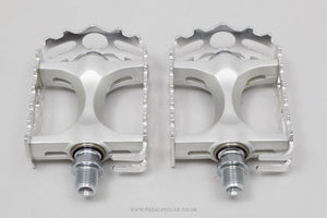Sakae/Ringyo (SR) Silstar 350 pedals, hailing from Japan and in production during the 1970s (yet still new & unused after all this time!). Made from aluminium and weighing in at 448 grams. A fine choice for keeping your vintage bike authentic, but also great for any other compatible bike.