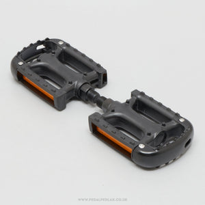 Sakae/Ringyo (SR) CTP-400 pedals, hailing from Japan and in production during the 1990s (yet still new & unused after all this time!). Made from aluminium and weighing in at 335 grams - pretty lightweight for pedals at that time. A fine choice for keeping your classic bike authentic, but also great for any other compatible bike.