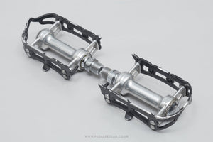Shimano PD-A200 pedals, hailing from Japan and in production during the 1980s. Made from aluminium/plastic/steel and weighing in at 525 grams. A fine choice for keeping your vintage bike authentic, but also great for any other compatible bike too.