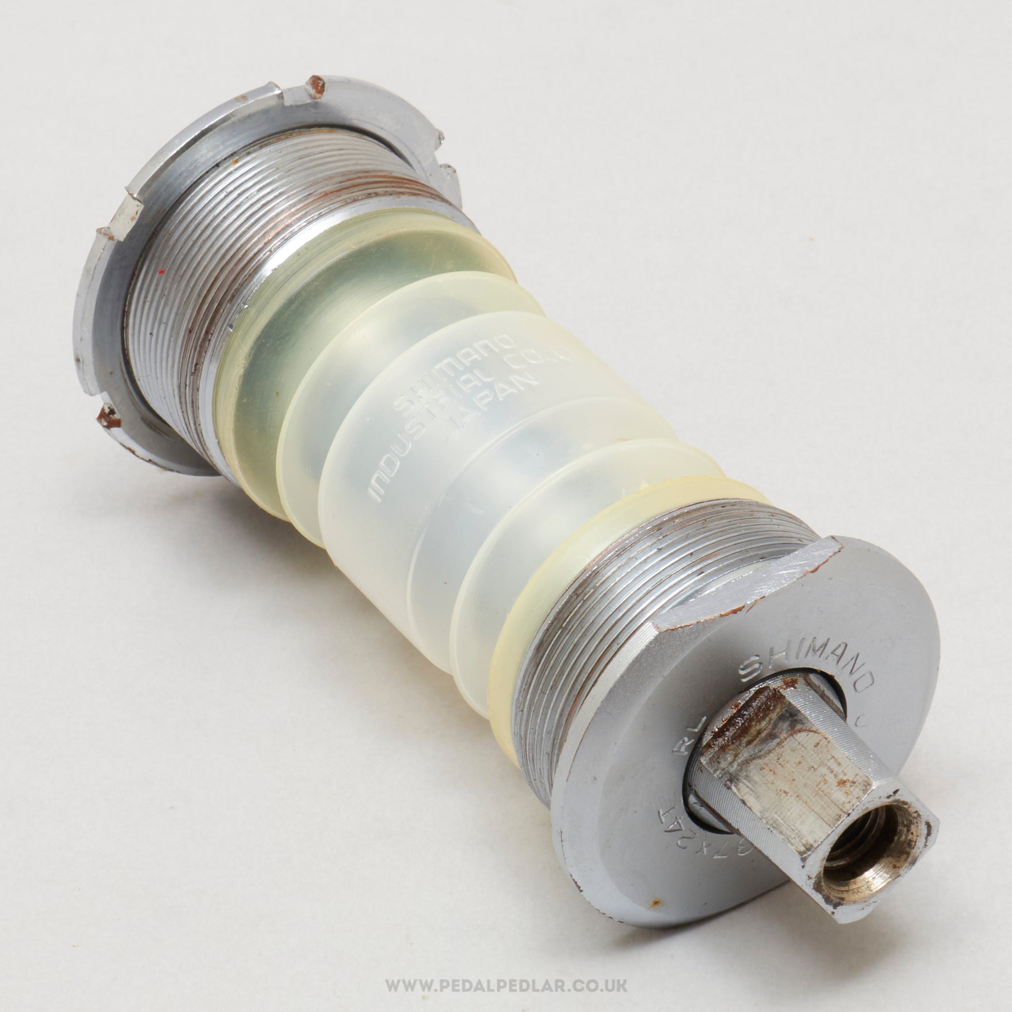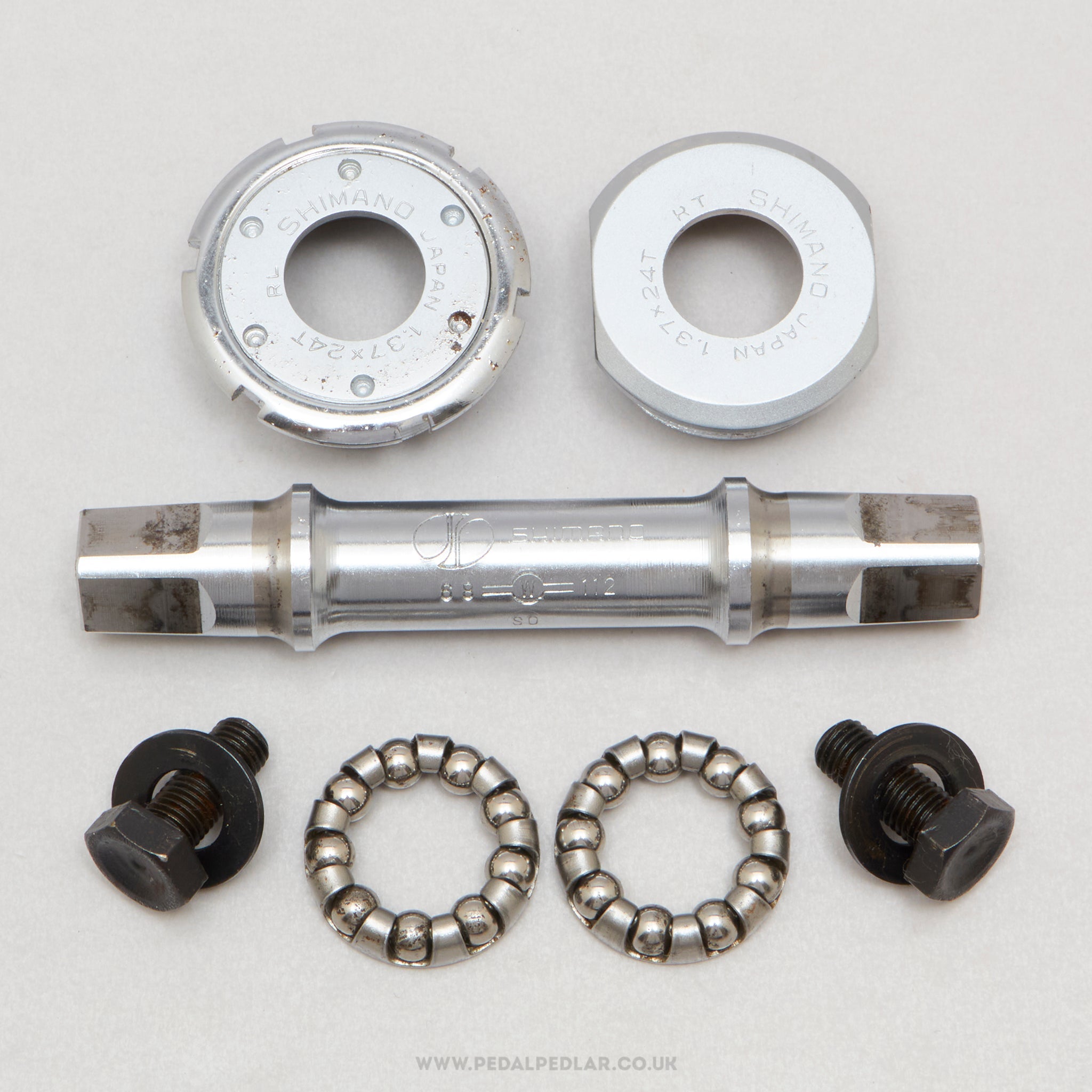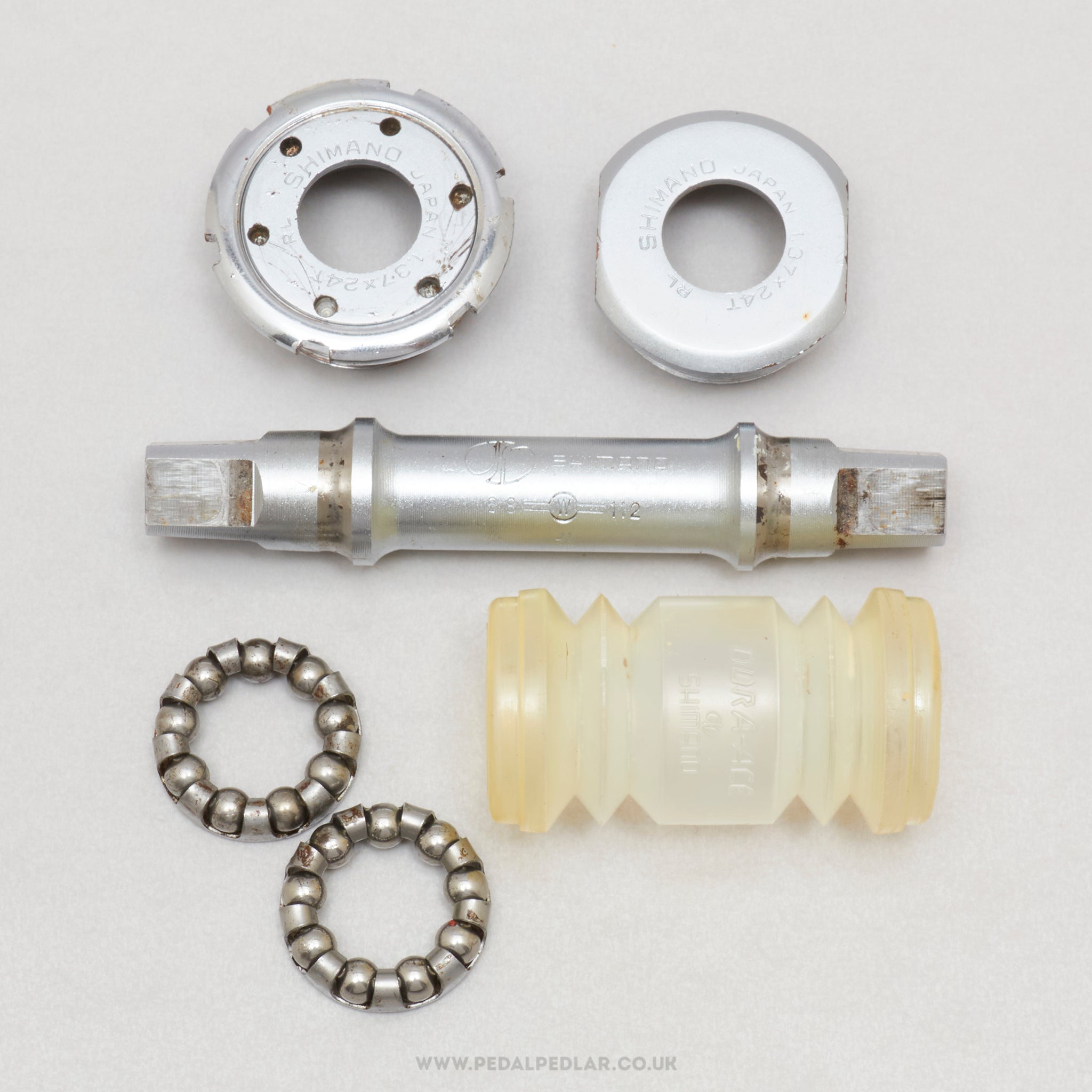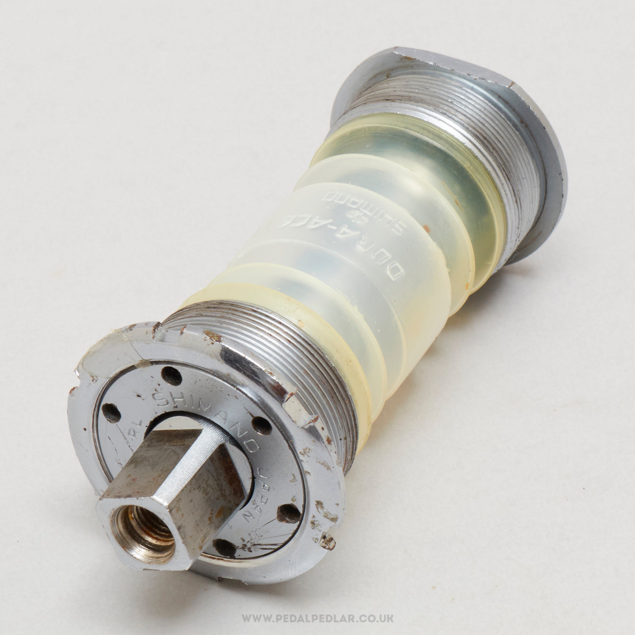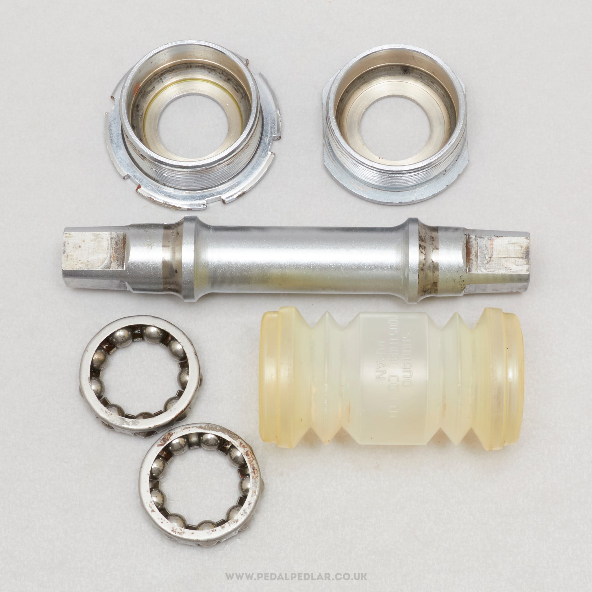 Shimano Dura-Ace bottom bracket (or BB for short), hailing from Japan and dating back to 1972. Made from steel and weighing in at 266 grams - pretty lightweight for a BB at that time. A fine choice for keeping your vintage bike authentic, but also great for any other compatible bike.