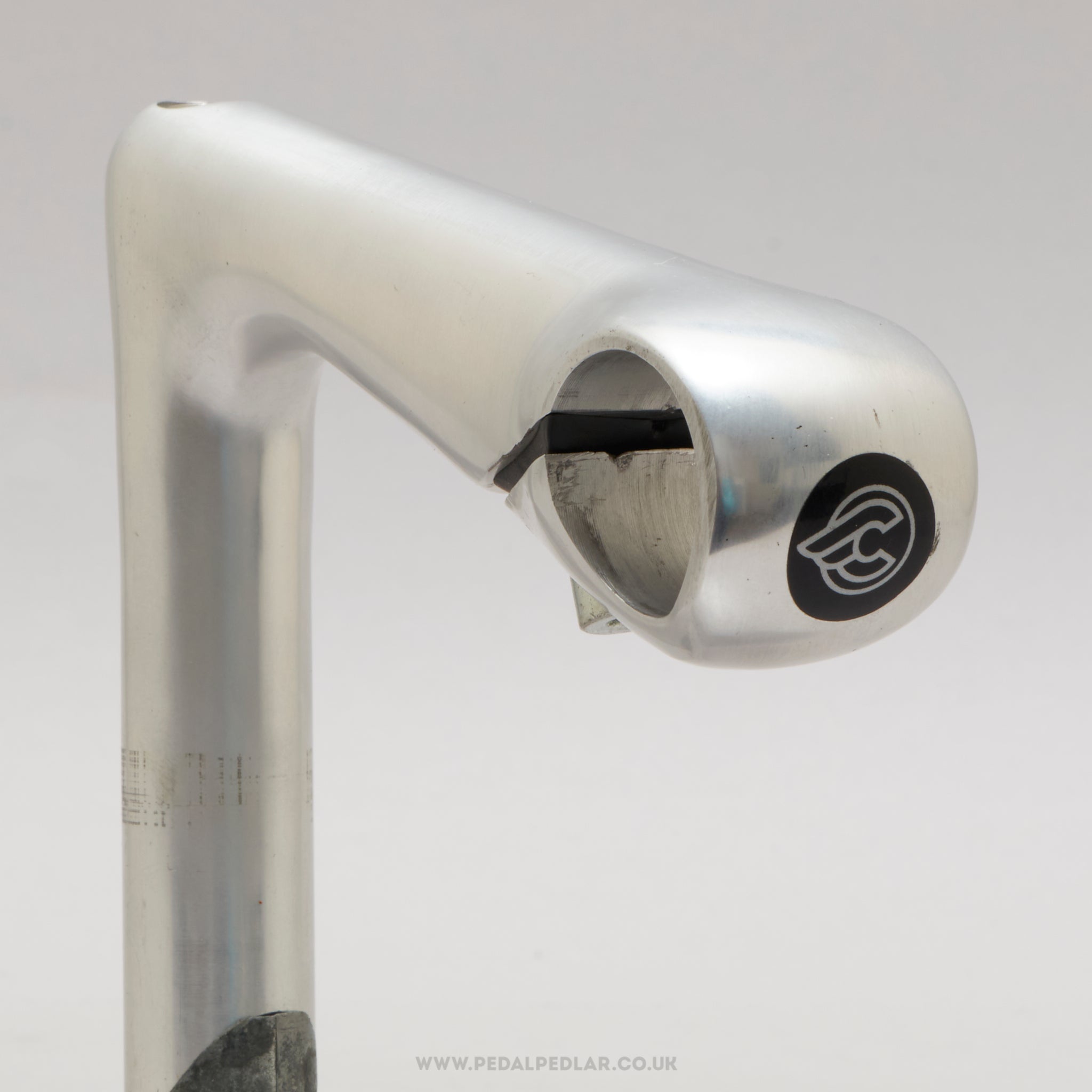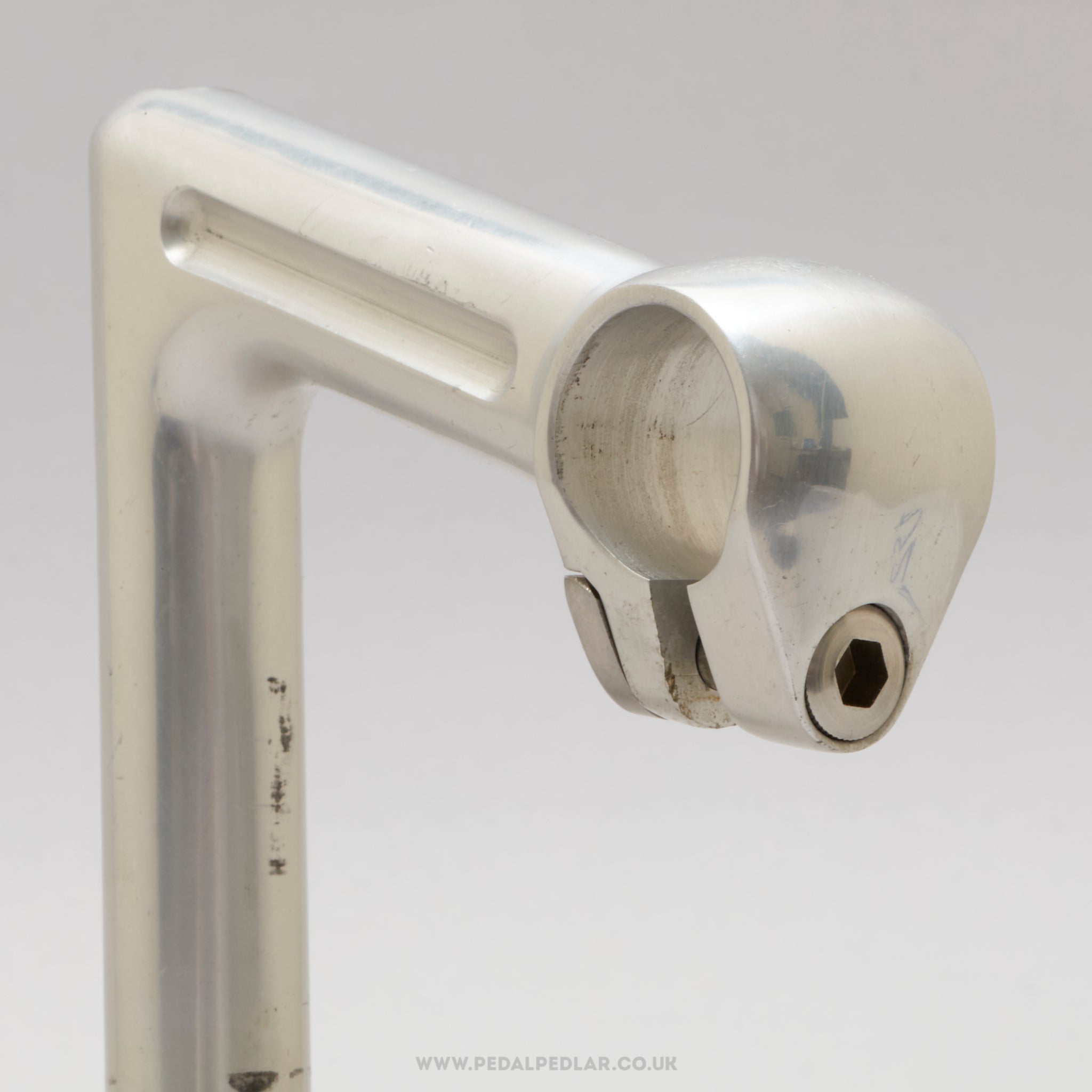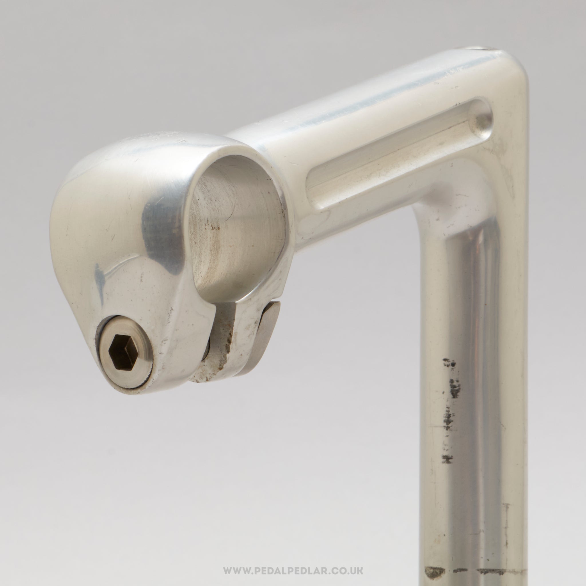 Cinelli Record handlebar stem (or gooseneck if you prefer), hailing from Italy and in production during the 1980s. Made from aluminium/steel and weighing in at 273 grams - pretty lightweight for a stem at that time. A fine choice for keeping your vintage bike authentic, but also great for any other compatible bike.