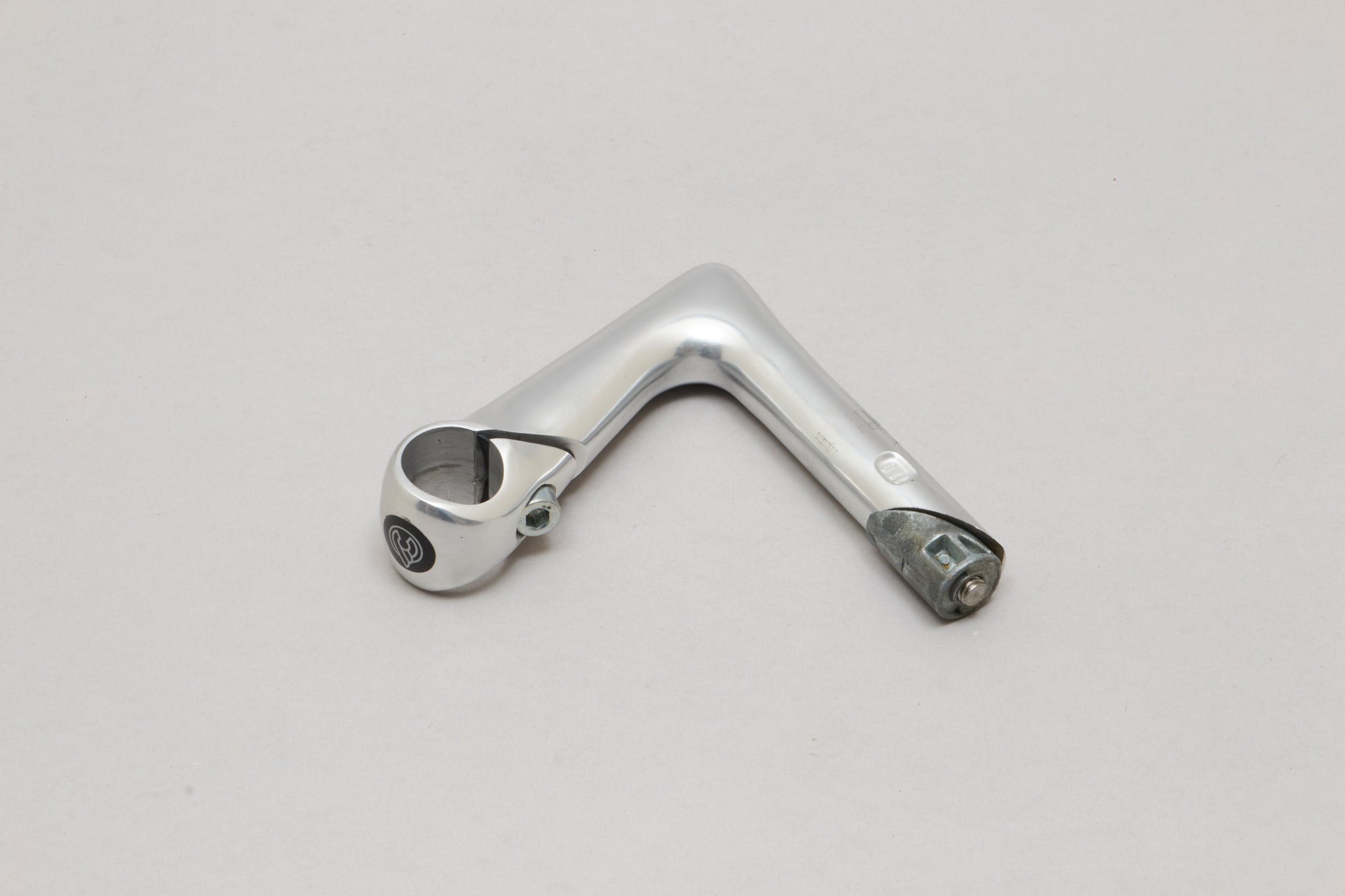 Cinelli Model 1A handlebar stem (or gooseneck if you prefer), hailing from Italy and in production during the 1970s. Made from aluminium/steel and weighing in at 310 grams. A fine choice for keeping your vintage bike authentic, but also great for any other compatible bike.