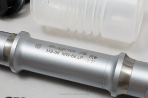 Stronglight SBBA bottom bracket, hailing from France and in production during the 1990s (yet still new & unused after all this time!). Made from steel/aluminum and weighing in at 252 grams - pretty lightweight for a bottom bracket at that time. A fine choice for keeping your classic bike authentic, but also great for any other compatible bike.