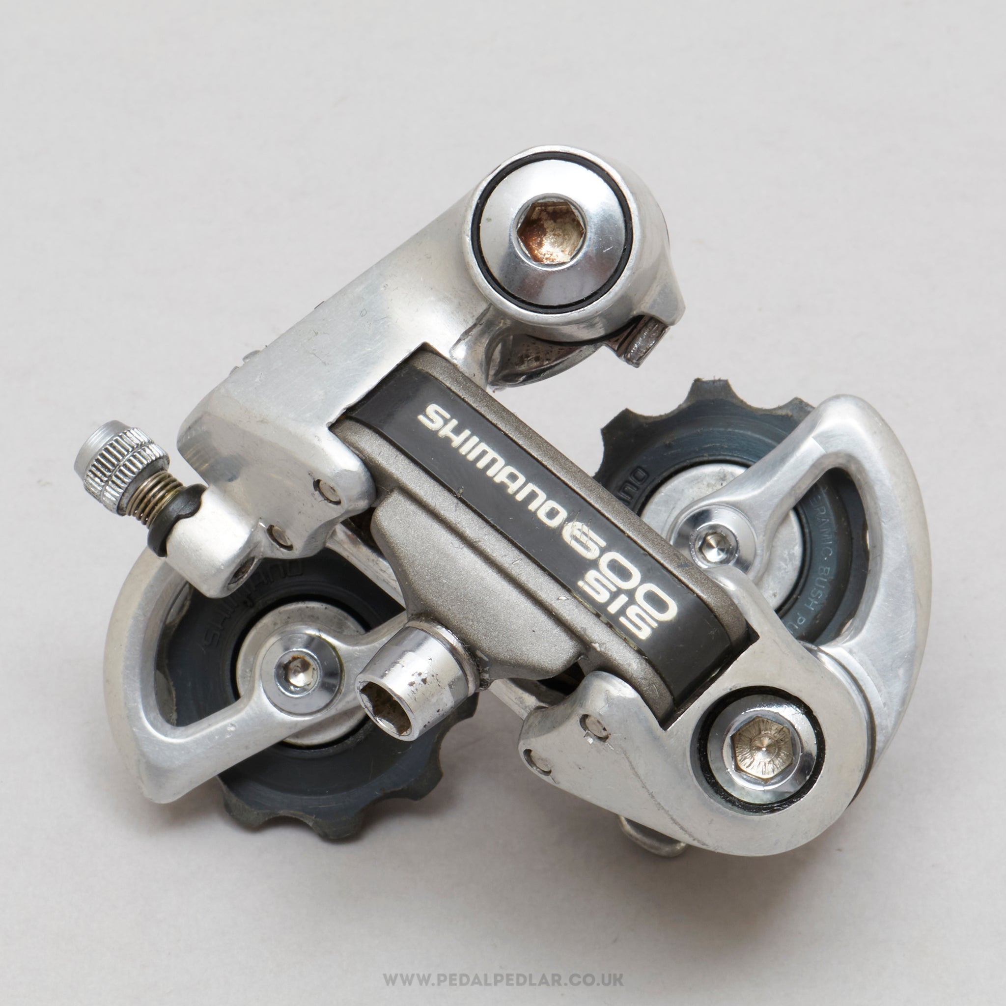Shimano 600 EX rear derailleur (or mech if you prefer), hailing from Japan and dating back to 1987. Made from aluminium/steel and weighing in at 208 grams - pretty lightweight for a rear derailleur at that time. A fine choice for keeping your vintage bike authentic, but also great for any other compatible bike.
