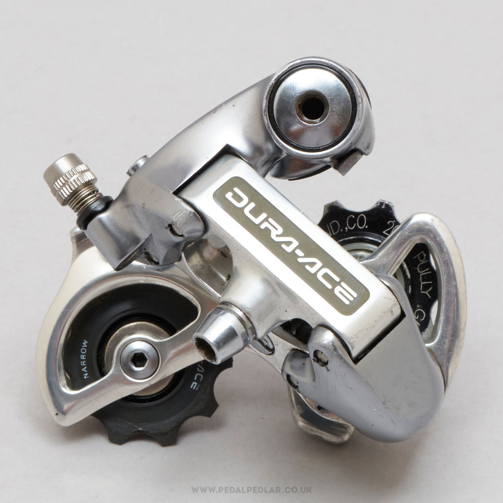Shimano Dura-Ace rear mech, hailing from Japan and dating back to 1986. Made from aluminium/steel and weighing in at 207 grams - pretty lightweight for a rear derailleur at that time. A fine choice for keeping your vintage bike authentic, but also great for any other compatible bike too.