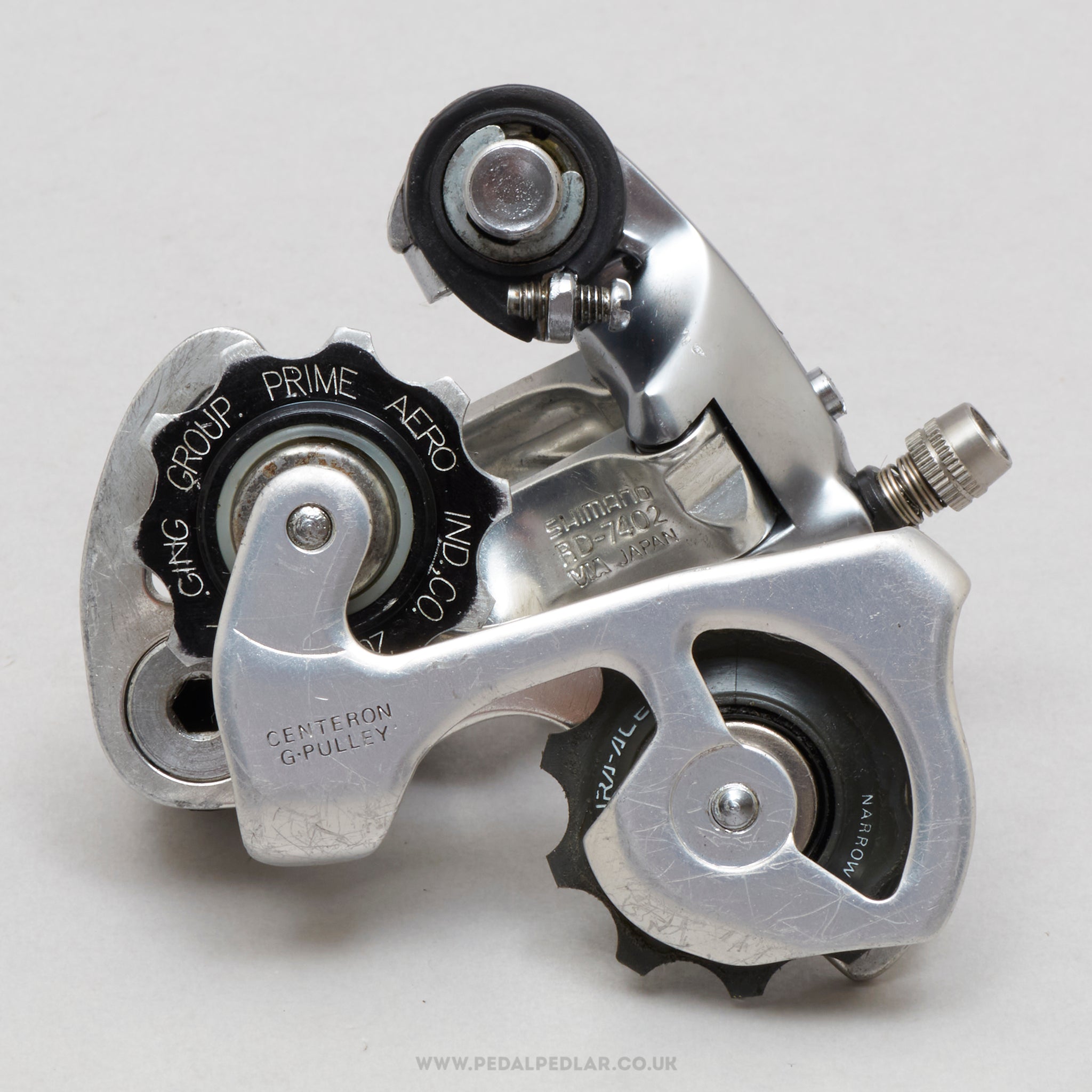 Shimano Exage 400LX rear mech, hailing from Japan and dating back to 1990. Made from aluminium/steel and weighing in at 321 grams. A fine choice for keeping your classic bike authentic, but also great for any other compatible bike too.