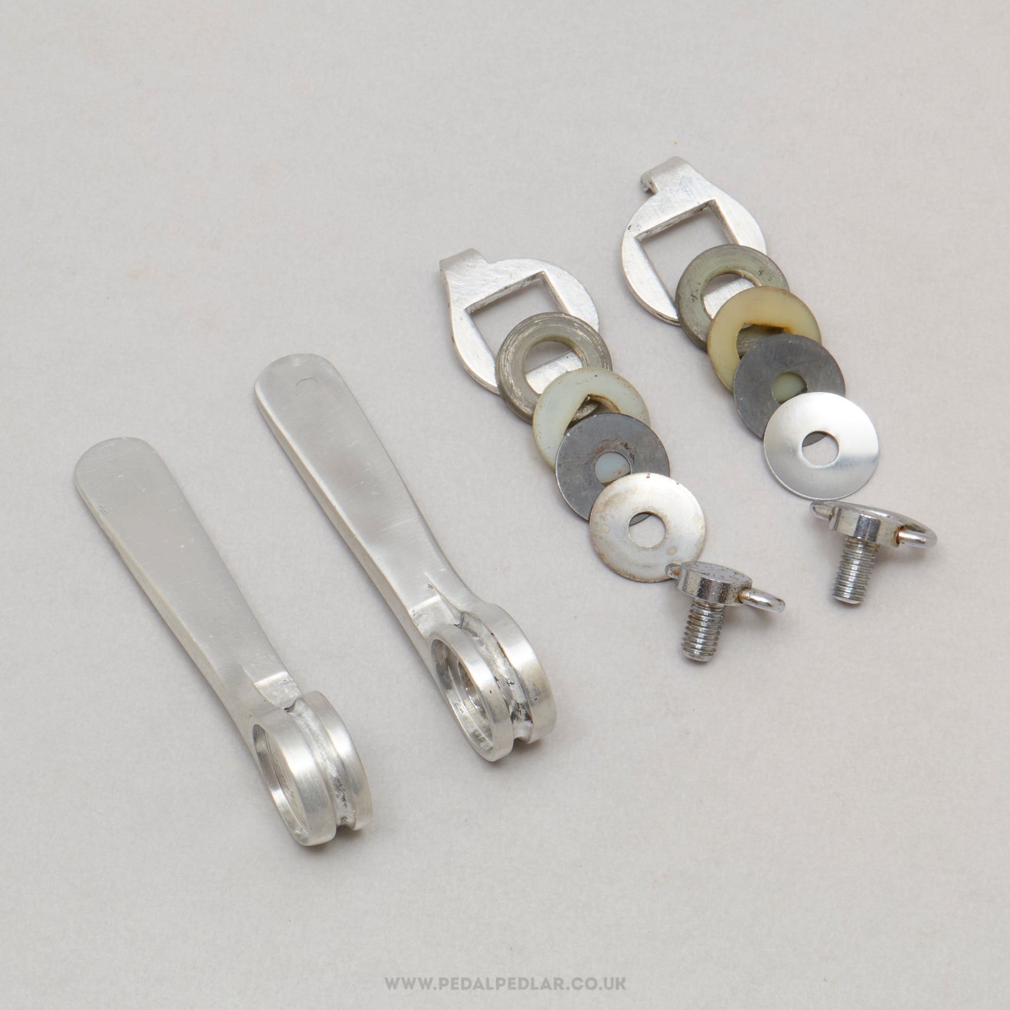 Campagnolo Triomphe down tube shifters (or gear levers if you prefer), hailing from Italy and in production during the 1980s. Made from aluminium/steel and weighing in at 37 grams - incredibly lightweight for downtube shifters at that time. A fine choice for keeping your vintage bike authentic, but also great for any other compatible bike.