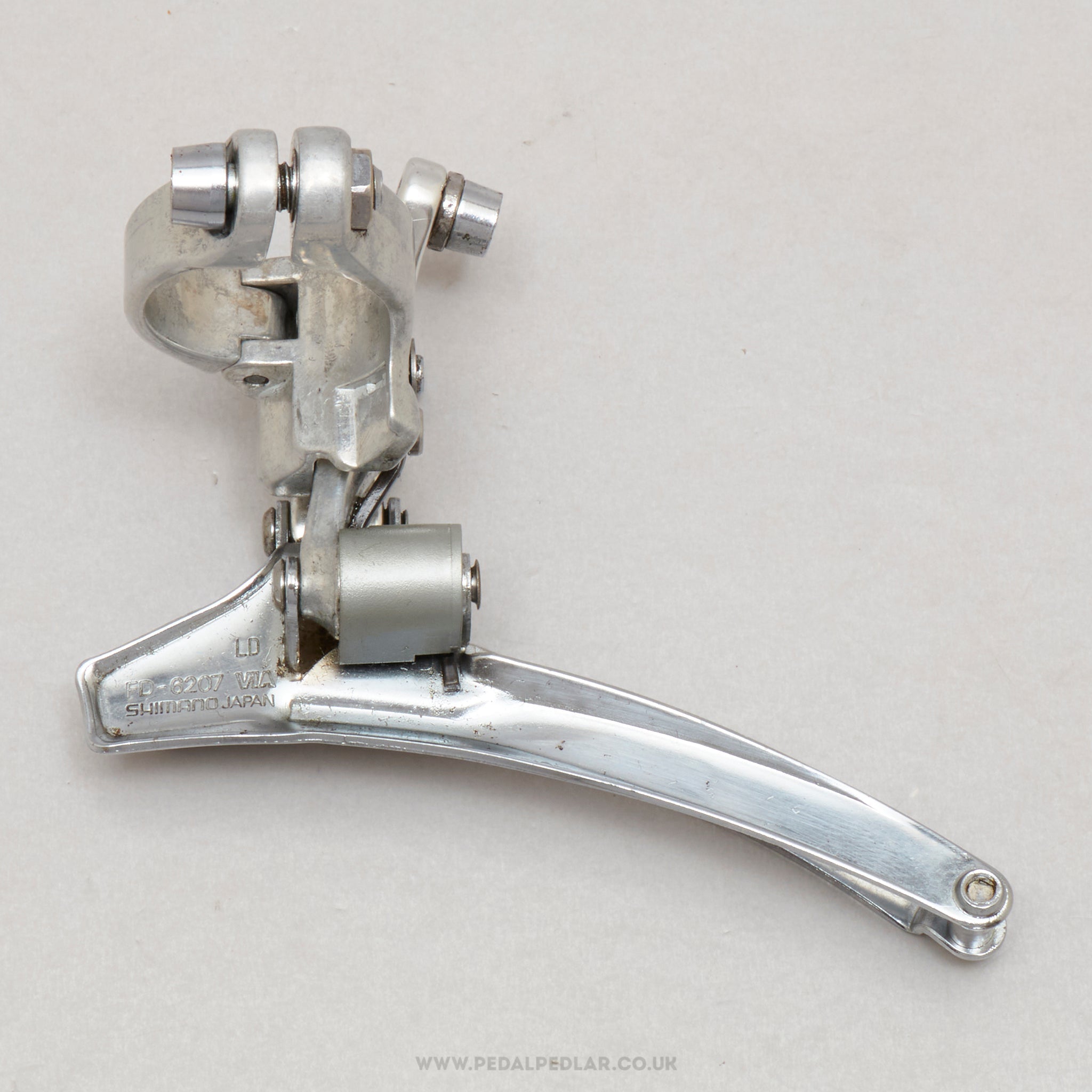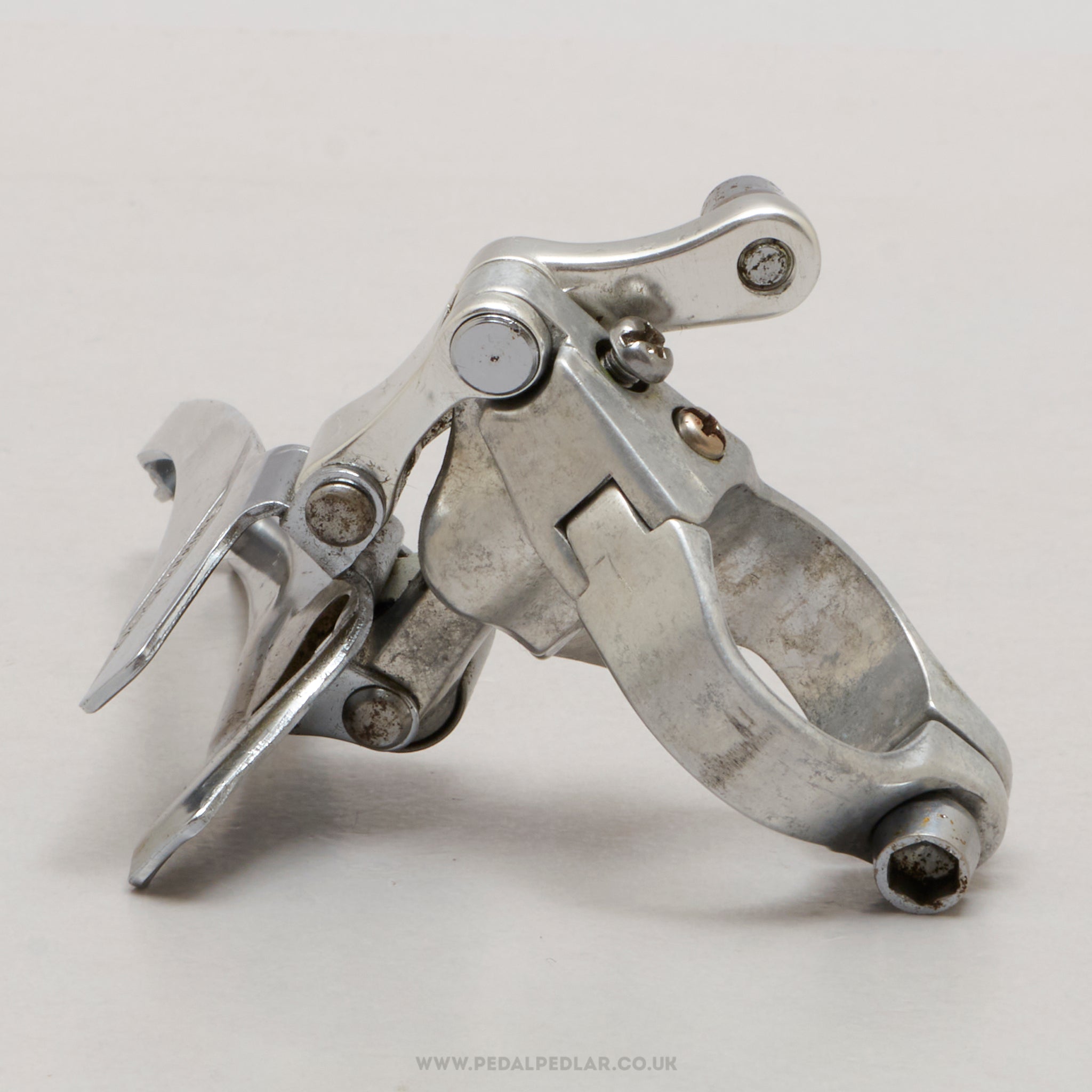 Shimano 600 EX front derailleur (or mech, or changer if you prefer), hailing from Japan and dating back to 1985. Made from aluminium/steel and weighing in at 114 grams. A fine choice for keeping your vintage bike authentic, but also great for any other compatible bike.