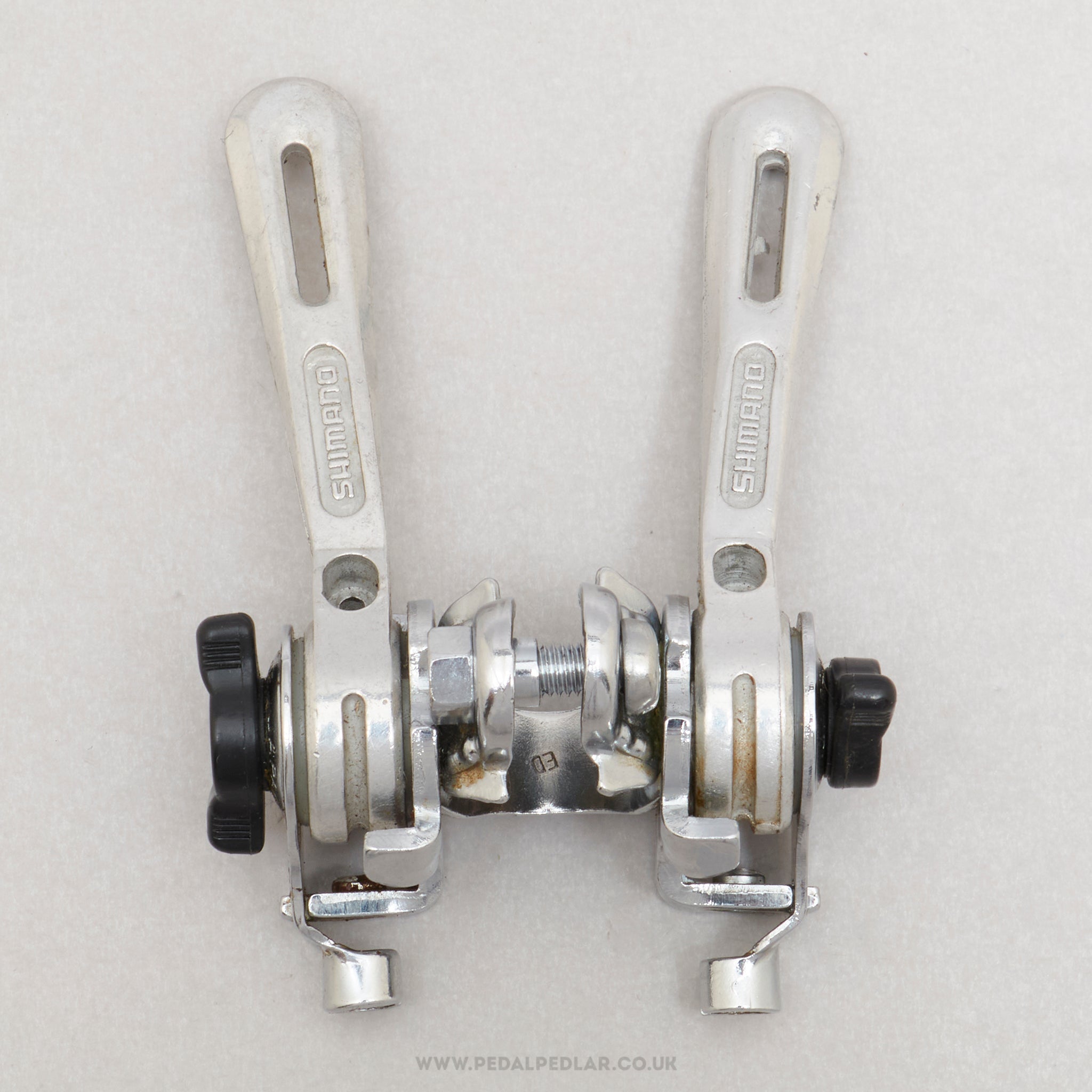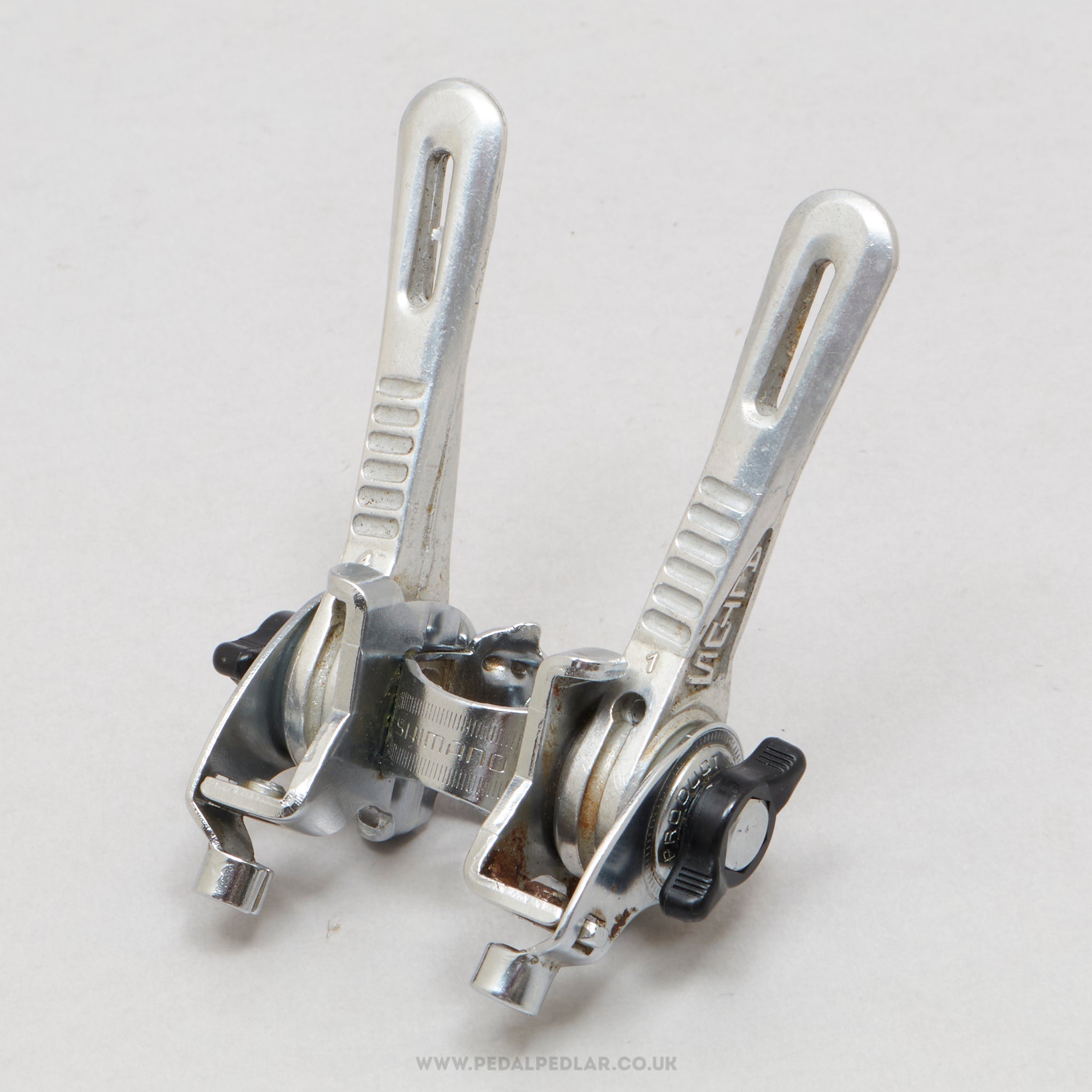 Shimano Altus ST stem shifters, hailing from Japan and in production during the 1980s (yet still new & unused after all this time). Made from aluminium/steel and weighing in at 91 grams. A fine choice for keeping your vintage bike authentic, but also great for any other compatible bike.