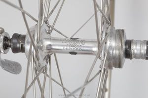 Campagnolo Record wheels built with Campagnolo Omega rims, the hubs hailing from Italy and in production during the 1990s. Made from aluminium/steel and weighing in at 2.2 kg. A fine choice for keeping your classic bike authentic, but also great for any other compatible bike too.