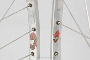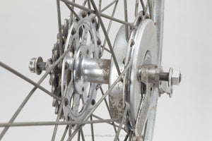 Gipiemme Sprint wheels built with Ambrosio Metamorphosis Durex Colnago Corse rims, the hubs hailing from Italy and in production during the 1980s. Made from aluminium/steel and weighing in at 1.9 kg - pretty lightweight for a pair of wheels at that time. A fine choice for keeping your vintage bike authentic, but also great for any other compatible bike too.