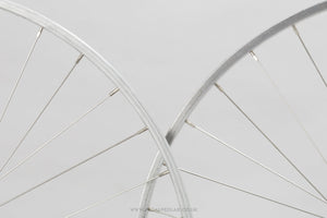 Mavic 500 / 550 wheels built with Mavic GP 4 rims, the hubs hailing from France and in production during the 1970s. Made from aluminium/steel and weighing in at 1.8 kg - incredibly lightweight for a pair of wheels at that time. A fine choice for keeping your vintage bike authentic, but also great for any other compatible bike too.