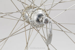 Zeus Gran Sport wheels built with Nisi Super Corsa rims, the hubs hailing from Spain and in production during the 1970s. Made from aluminium/steel and weighing in at 1.9 kg - pretty lightweight for a pair of wheels at that time. A fine choice for keeping your vintage bike authentic, but also great for any other compatible bike too.